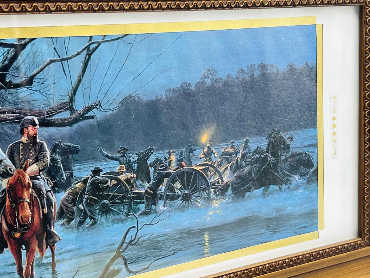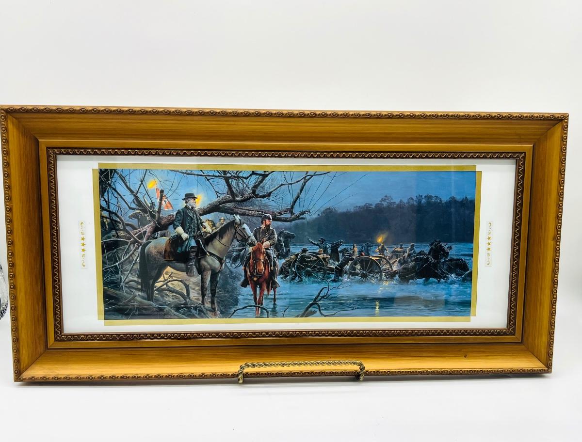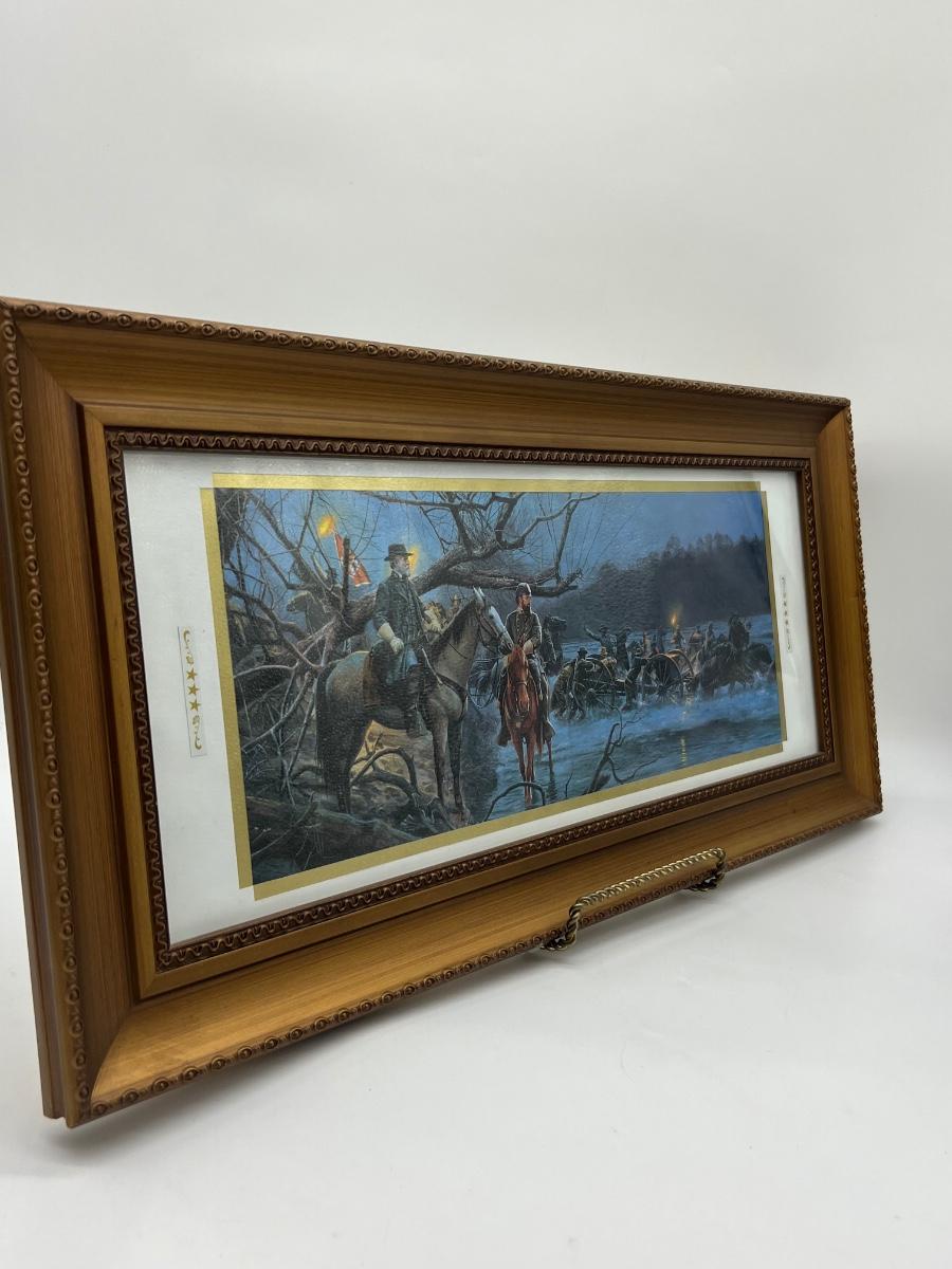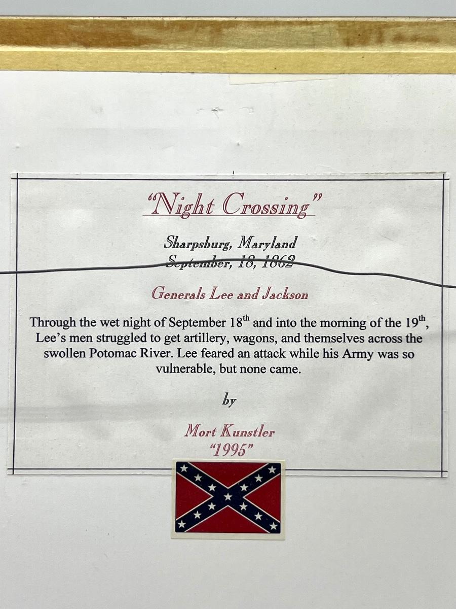 Framed Mort Kunstler “Night Crossing” 1995. Measures 11 1/2 inches tall and 23 1/2 inches wide.