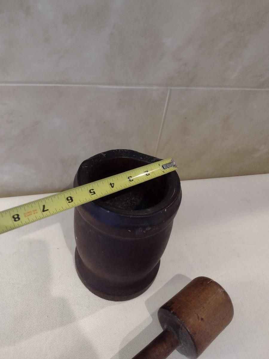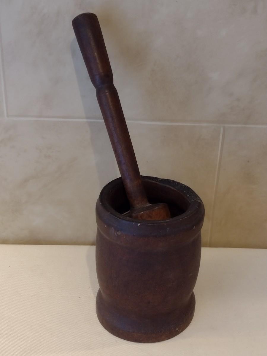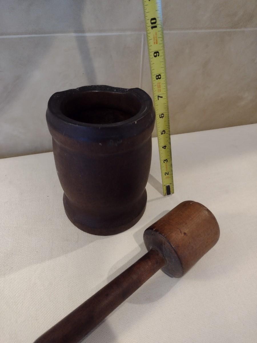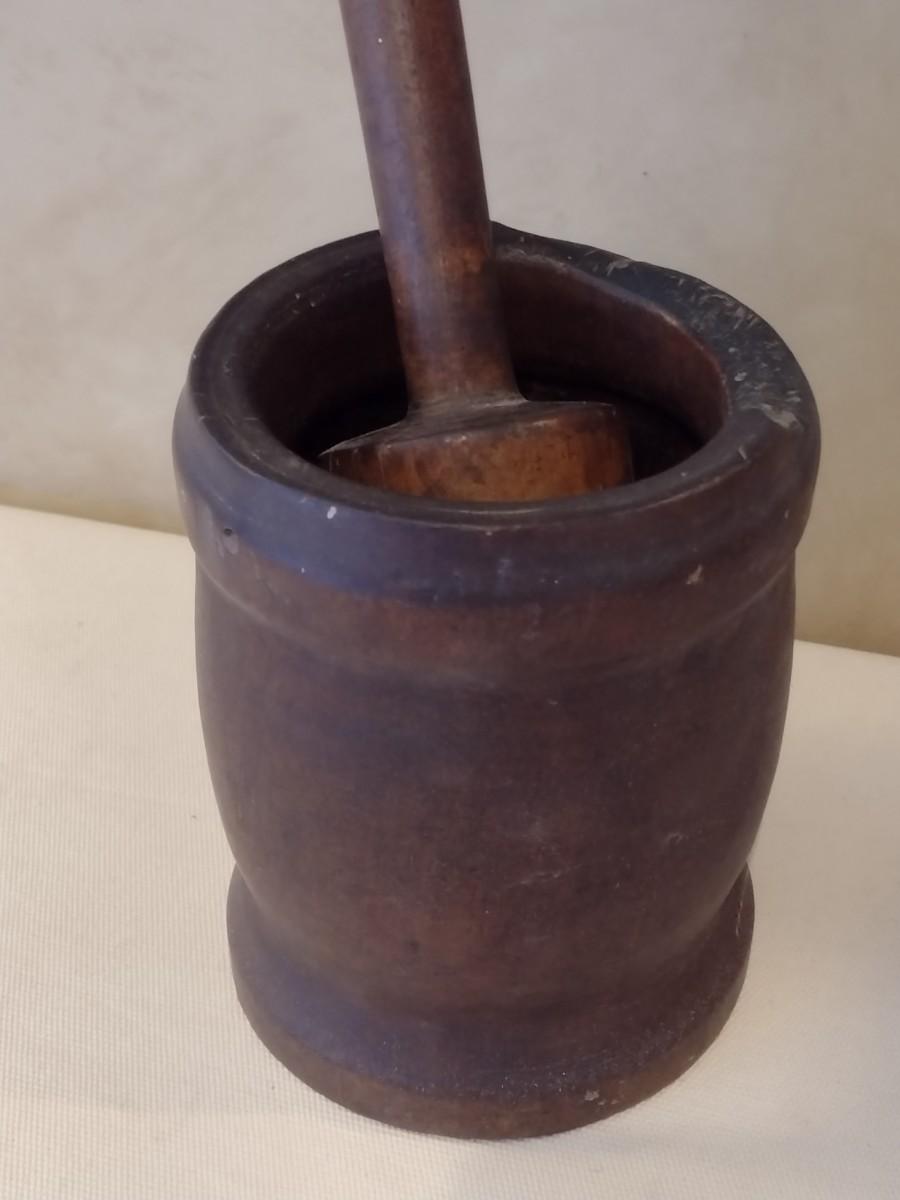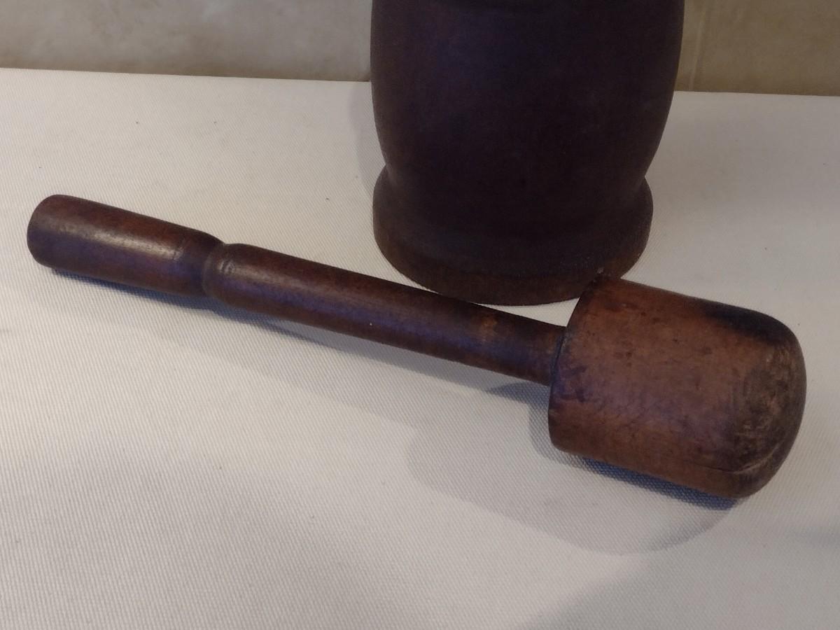 Antique Large Hand Turned Wood Mortar and Pestel