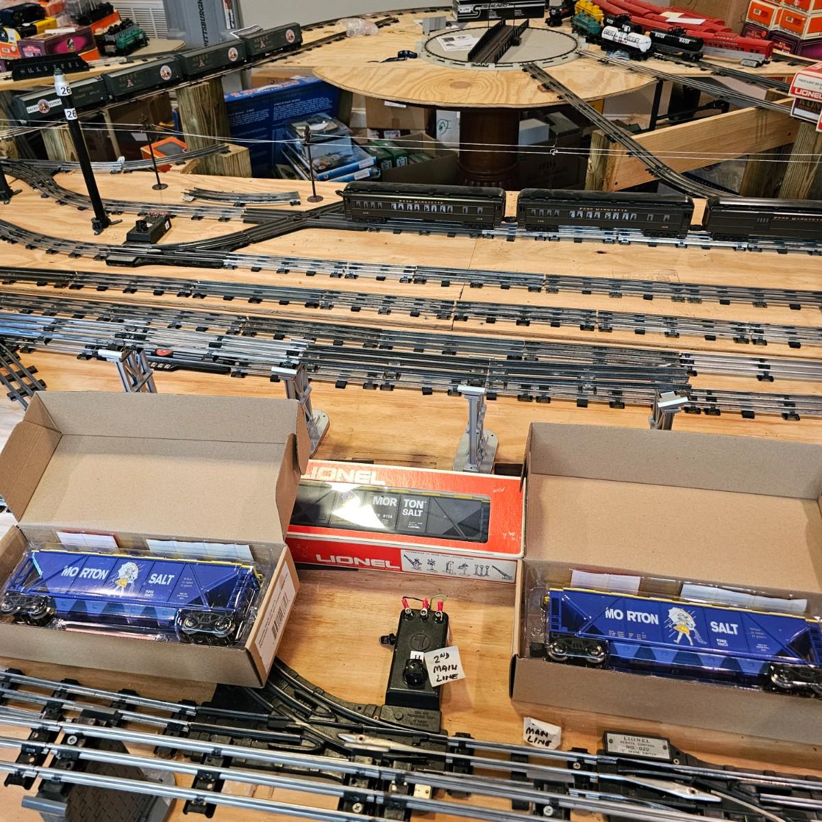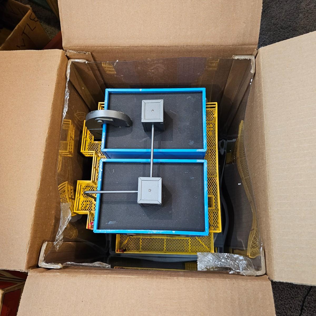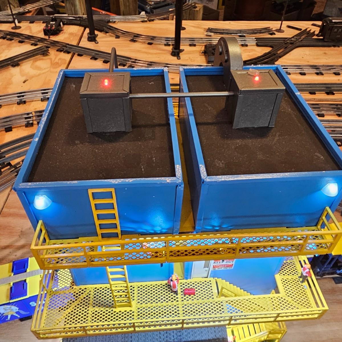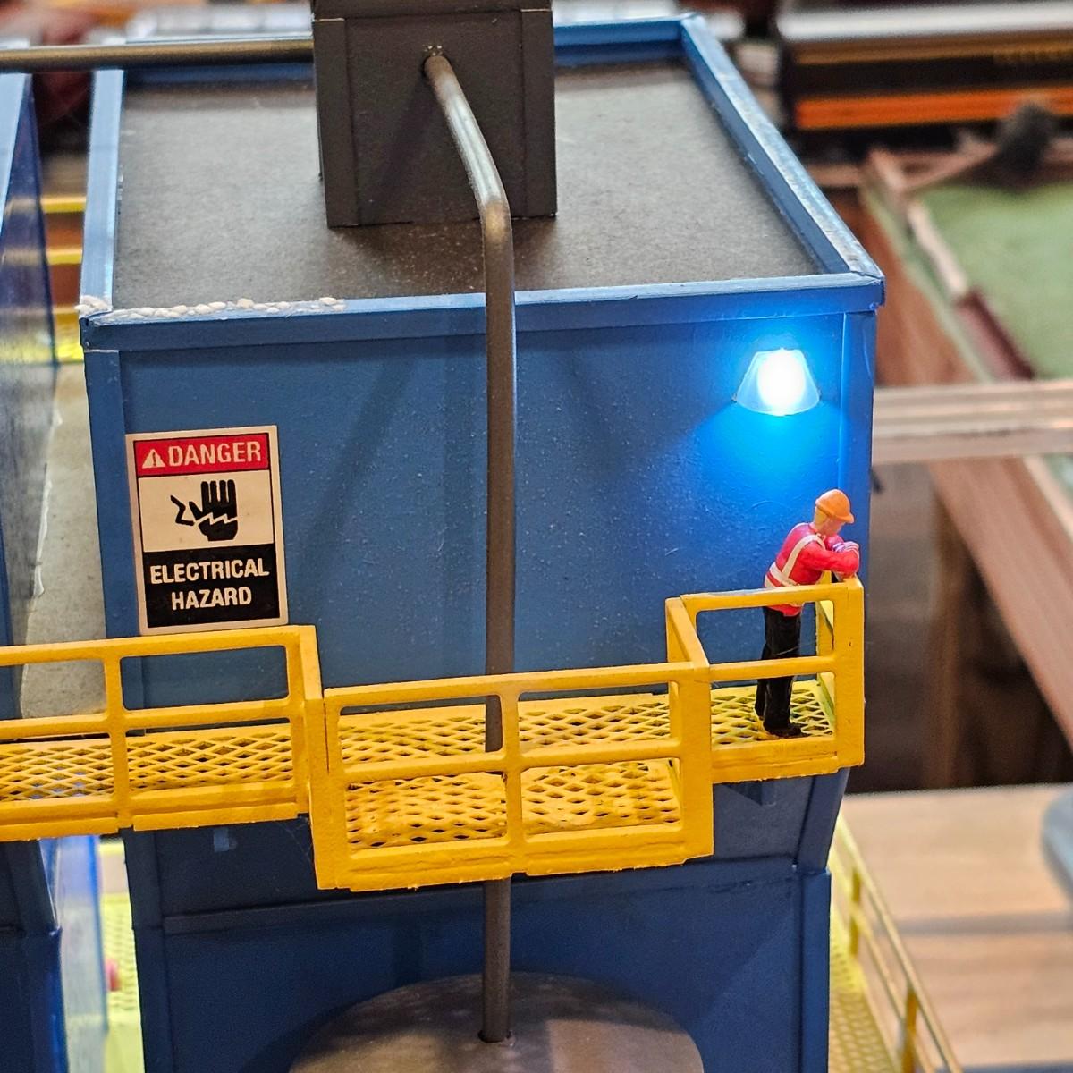 Two story structure for delivery and receiving of Morton Salt products. Lots of LED lighting and animated billboards on sides of structure. Track opening for pull through commerce, also figures and scenery included. Building is 12" x 11" x 15"H, has AC power adapter included. To serve the industry, three covered hoppers in Morton Salt colors and lettering with opening hatches. Boxes for all items. See photos for details. Shipping available. Please note that any price tag seen on an item was not put there by Sterling Transitions and does not reflect the current value of the item.