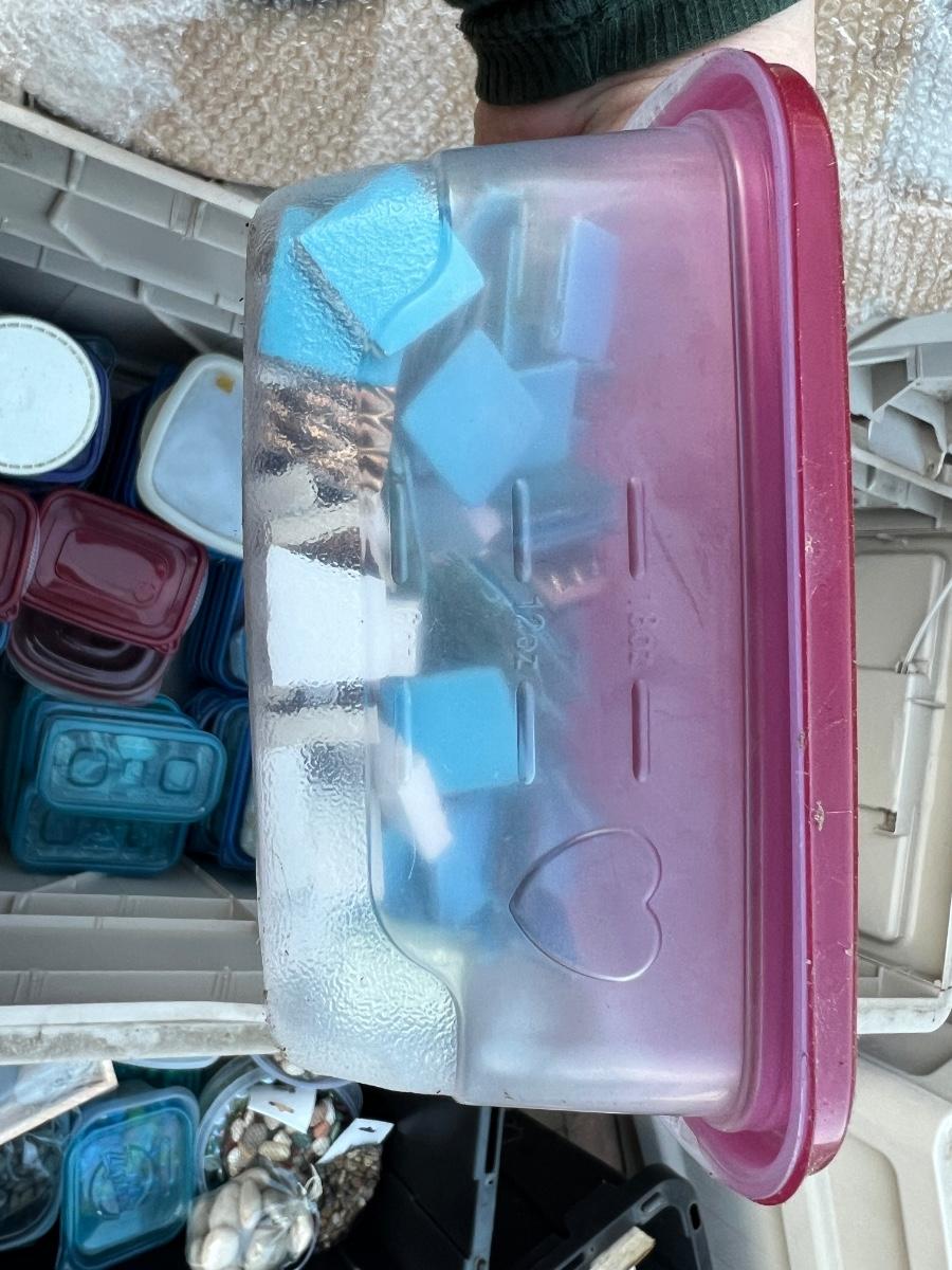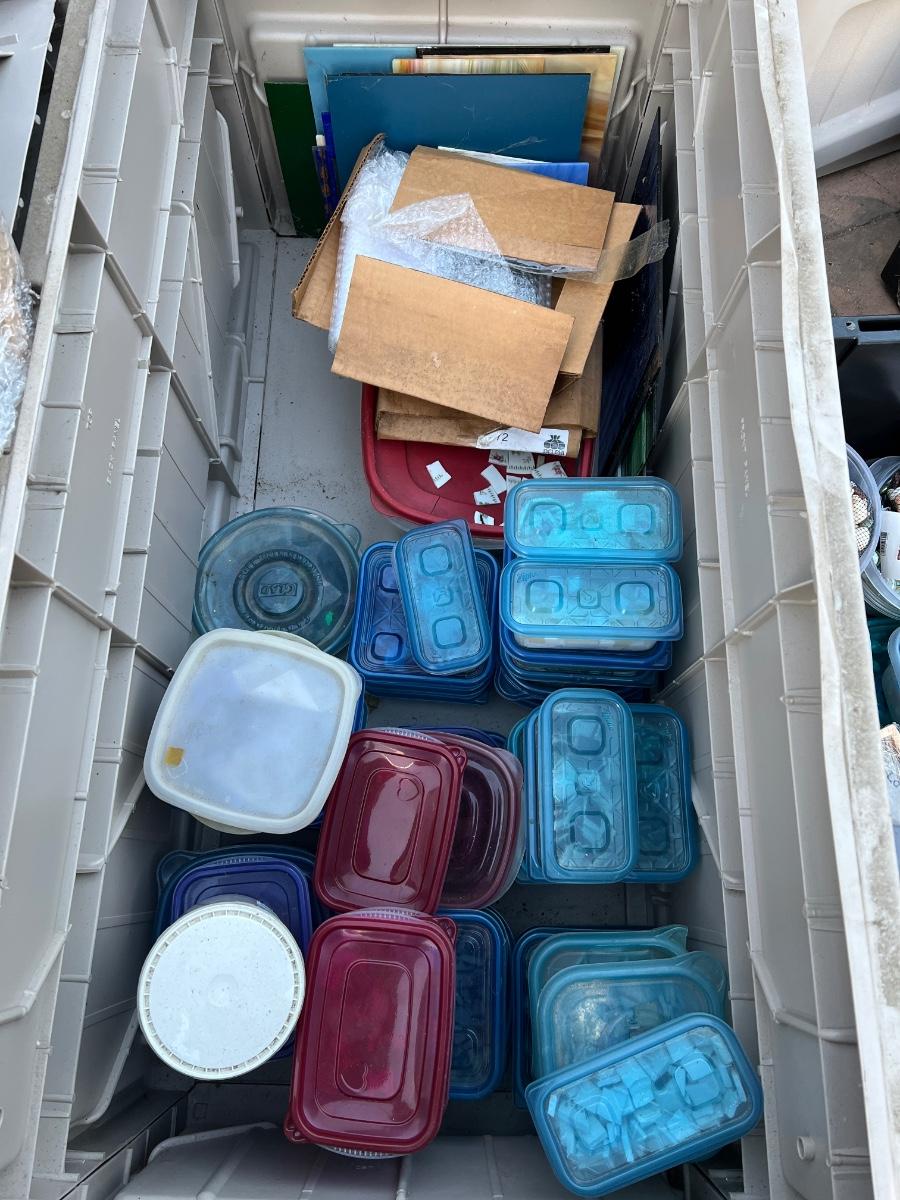 Suncast large storage bins not included, you can buy them in their own lots. Black totes are included.