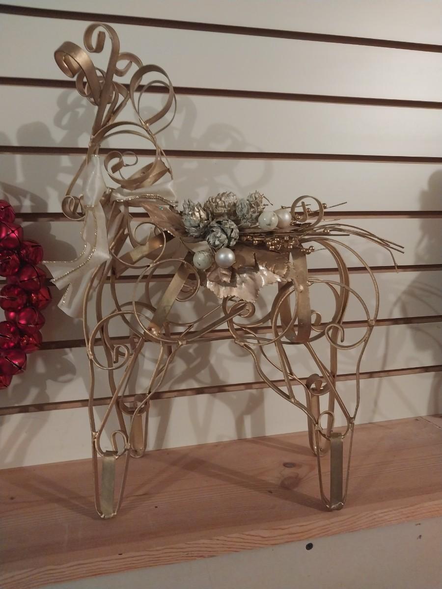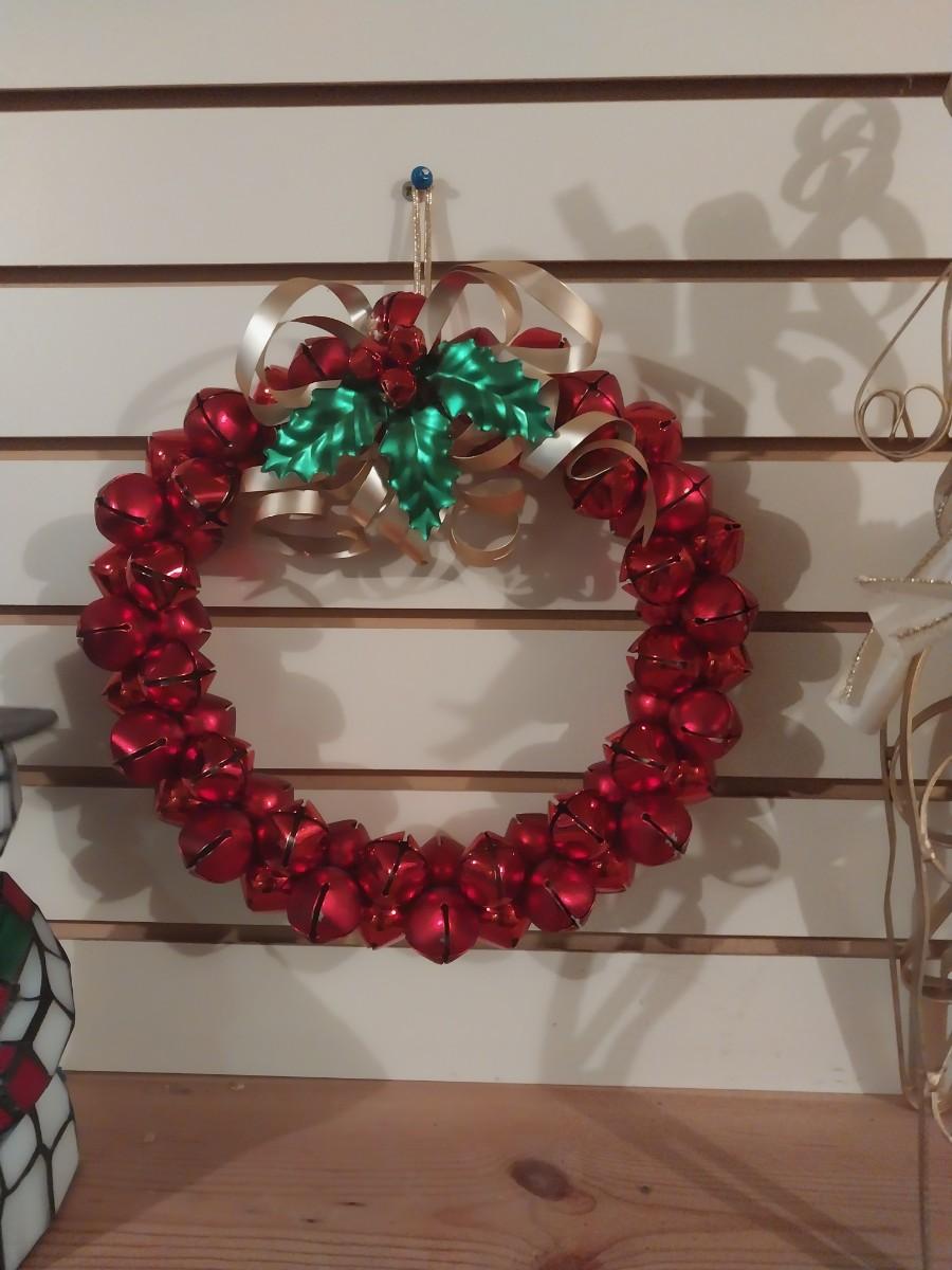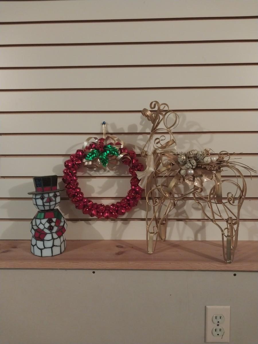 MOSIAC SNOWMAN-GOLD METAL REINDEER AND BELL WREATH