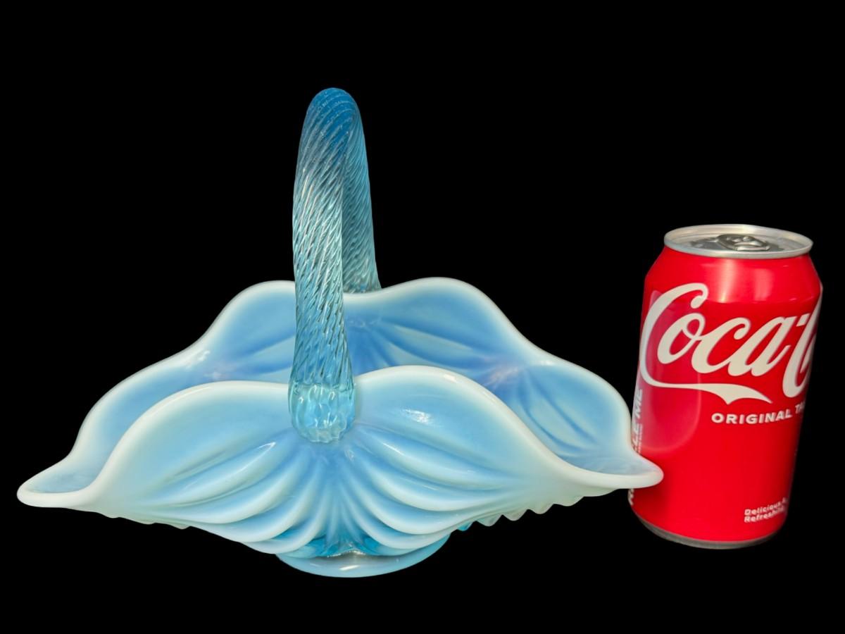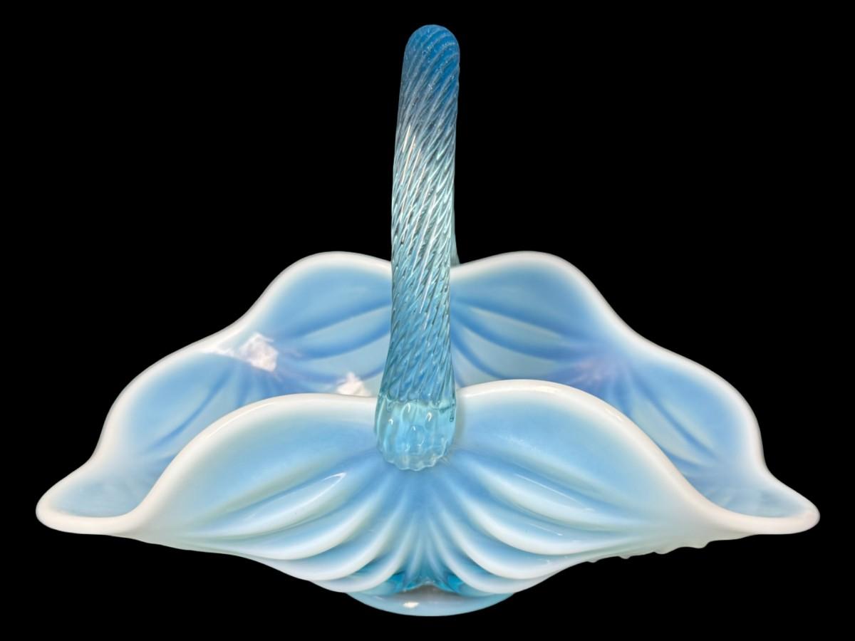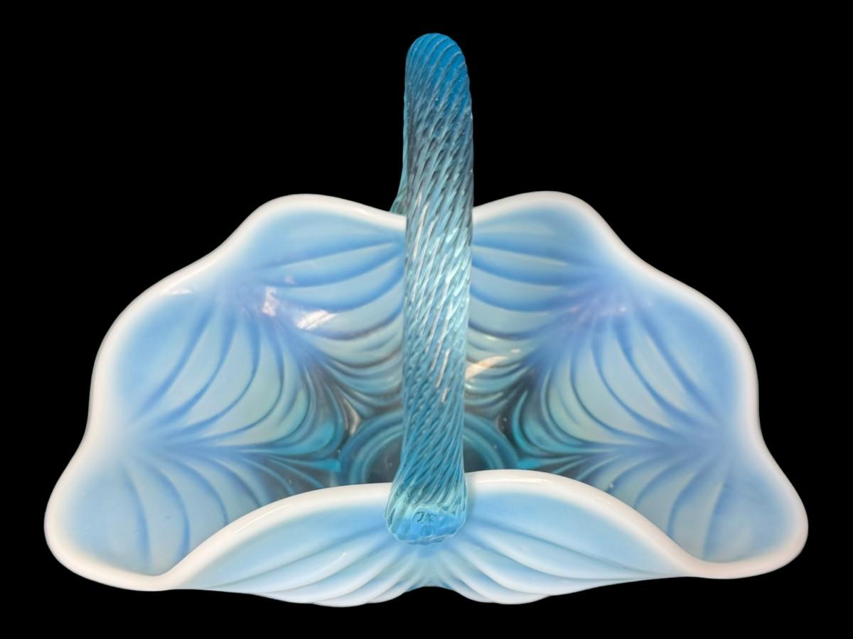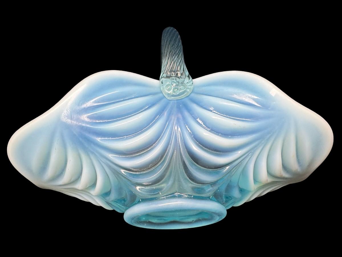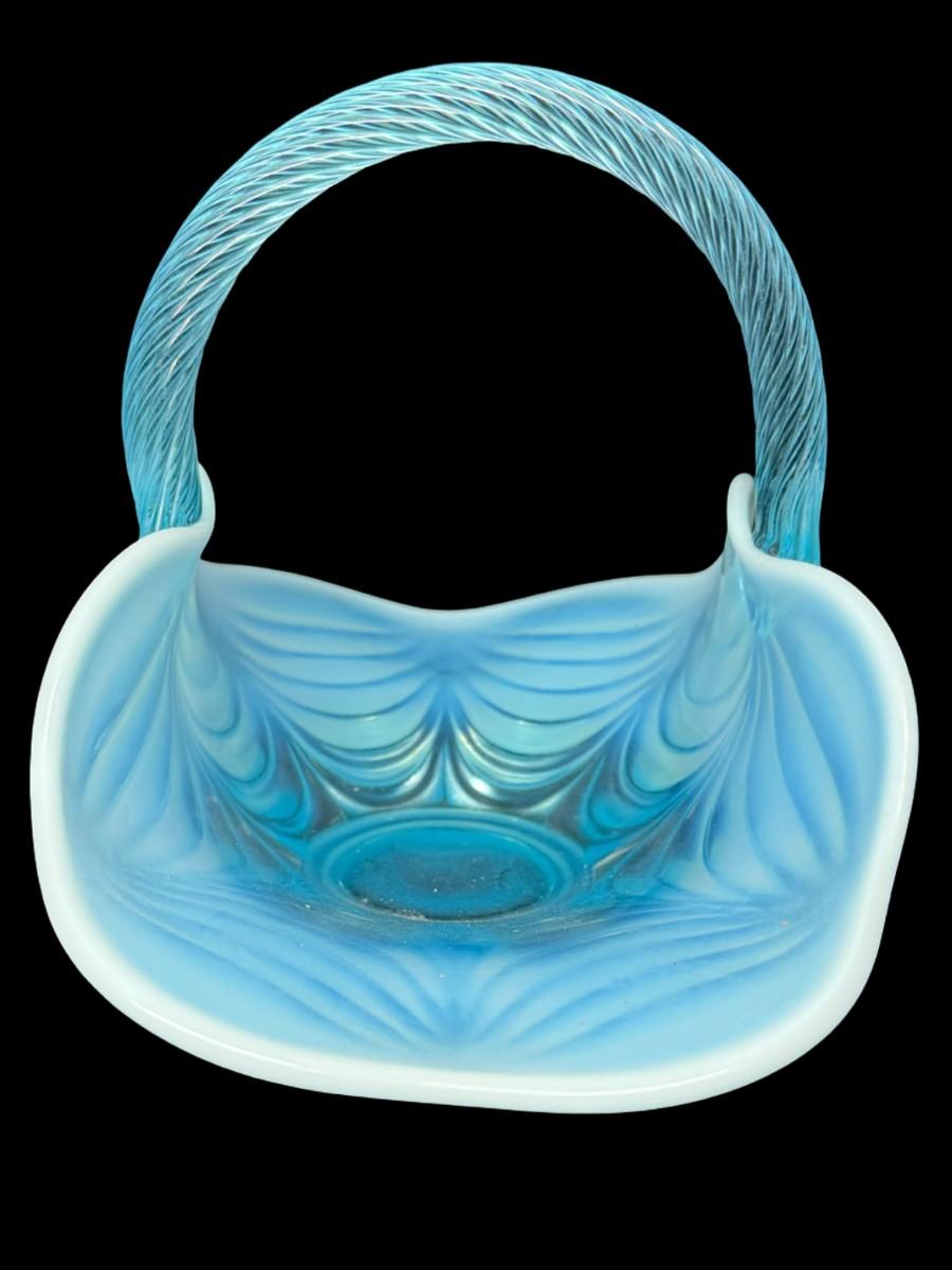 Mosser Glass Aqua Opalescent Drapery Basket