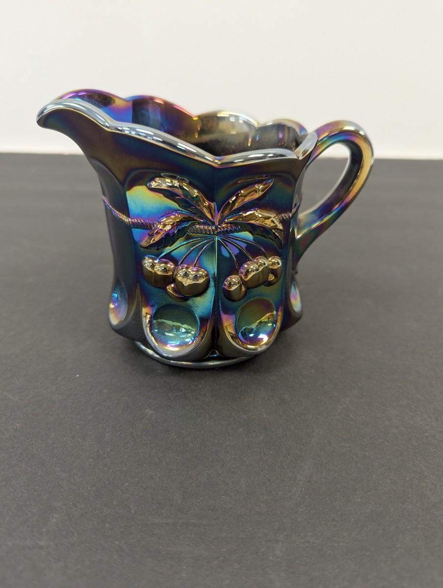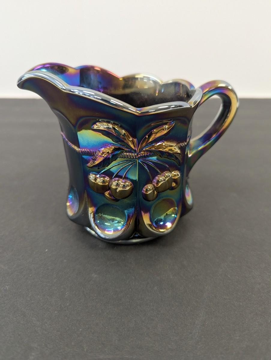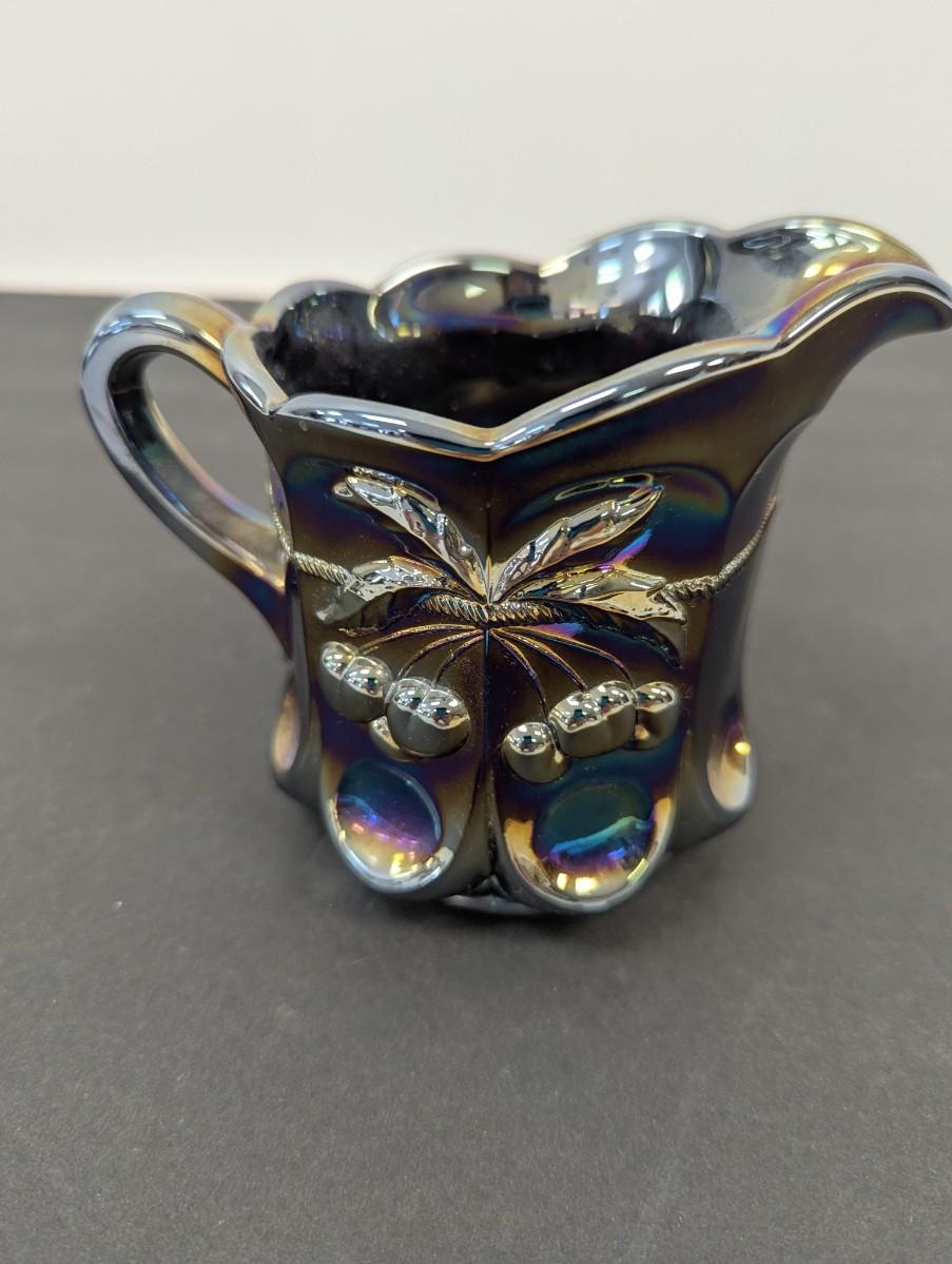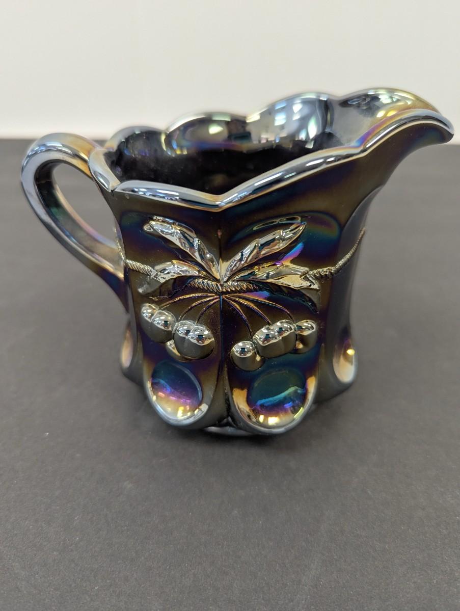 Mosser Glass Mini Pitcher Purple Carnival Glass Amethyst Cherry Cable #4