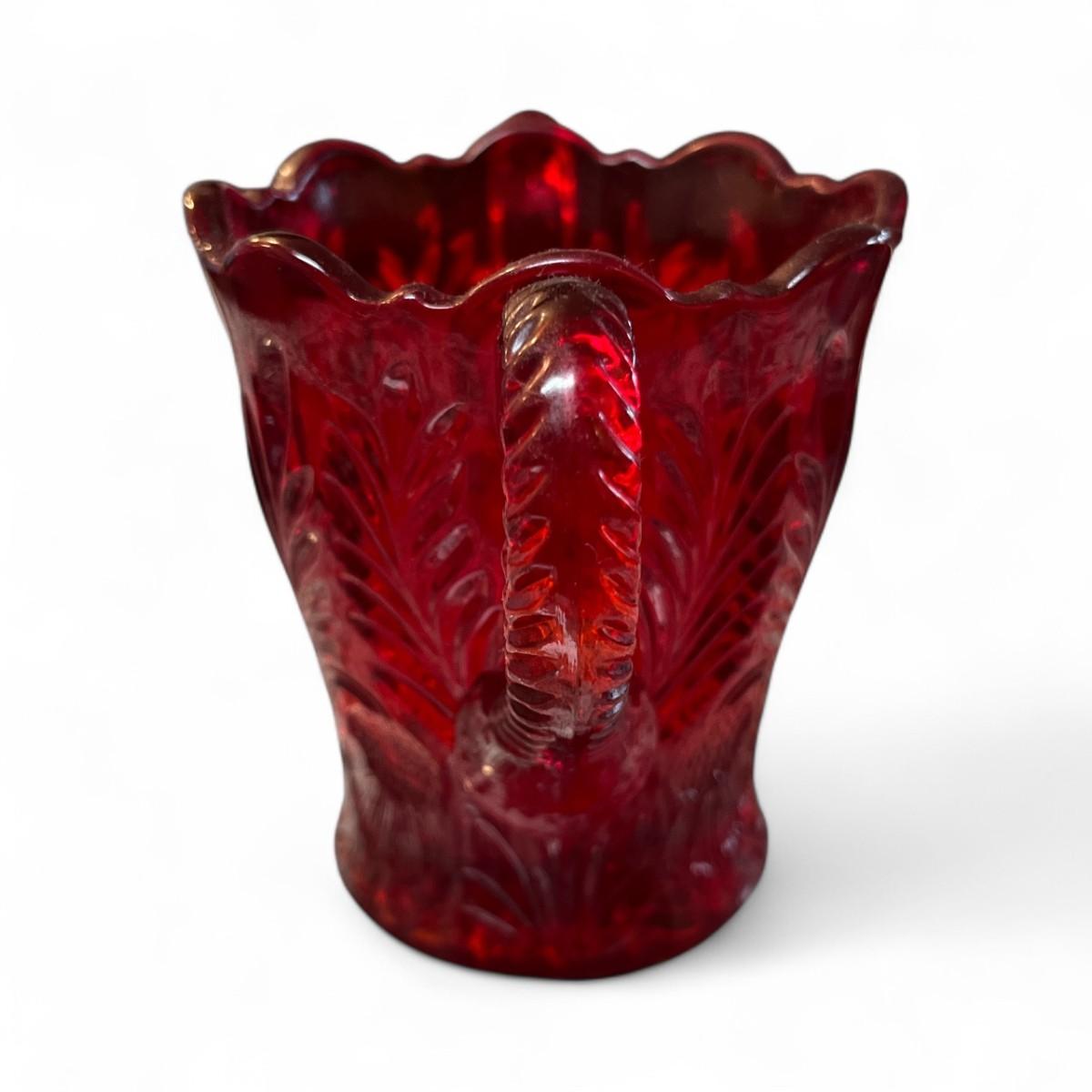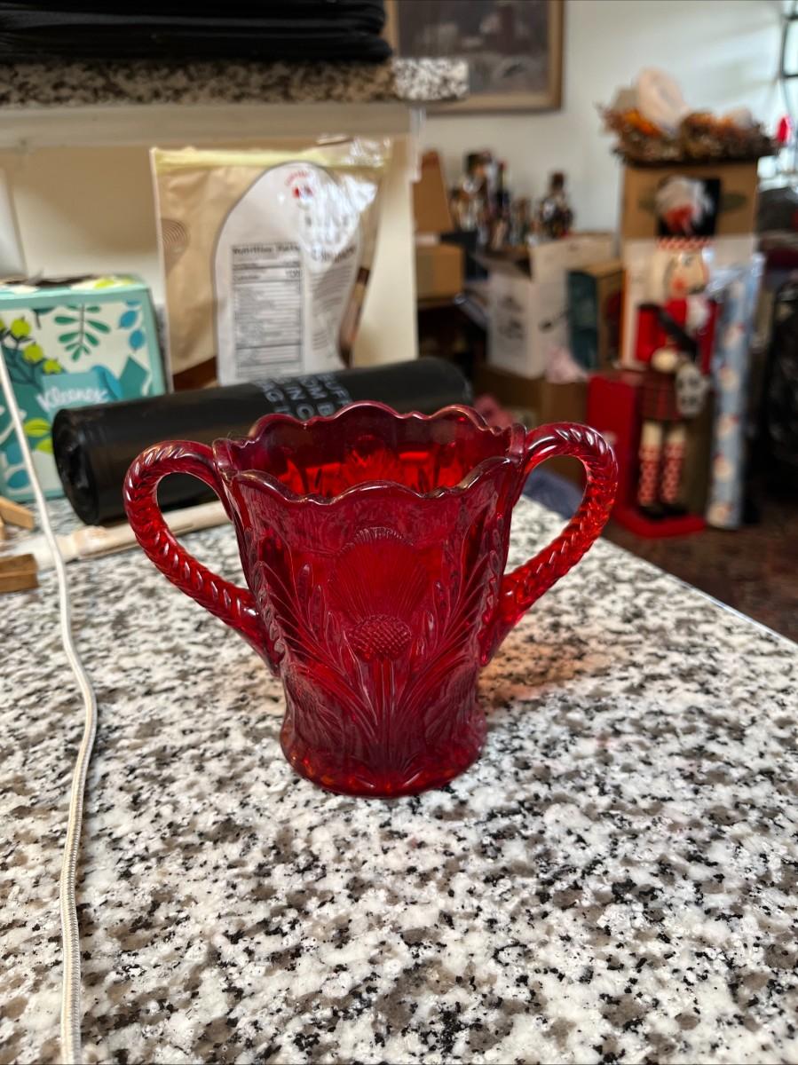 Mosser Red Inverted Thistle Glass Sugar Bowl with Double Handles