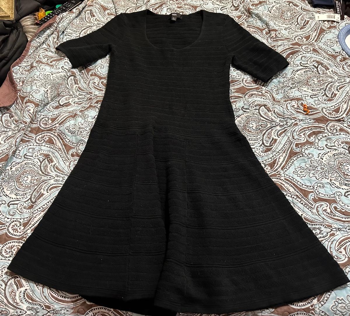 Mossimo Supply CO. Women’s black knit dress with a flared skirt and short sleeves