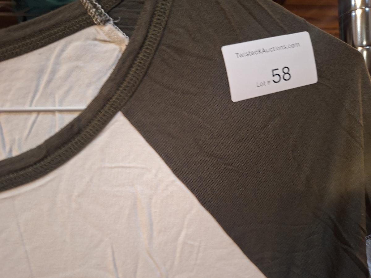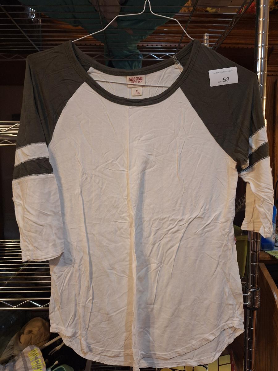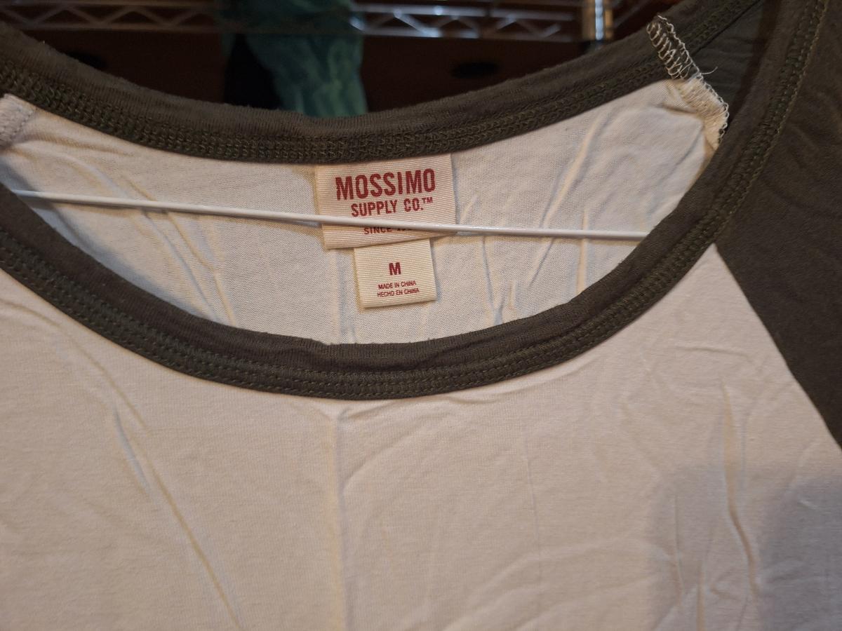 Mossimo white and olive-colored raglan baseball tee with 3/4 sleeves size M