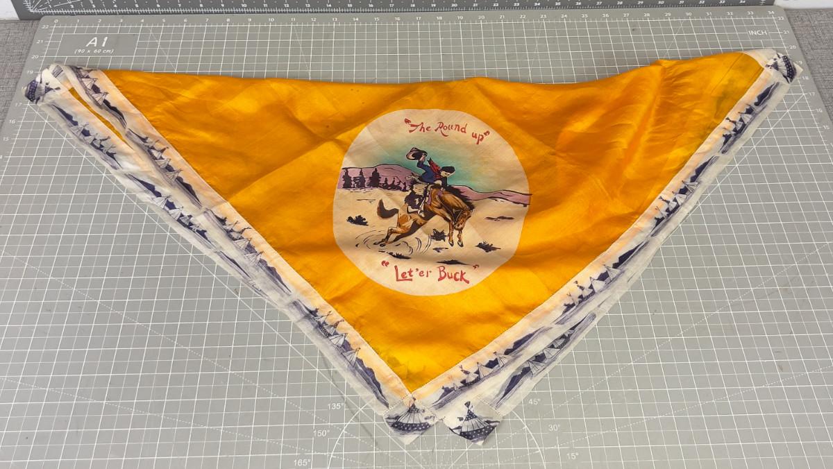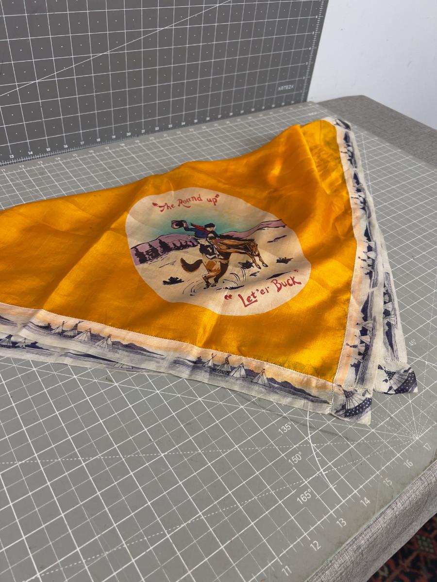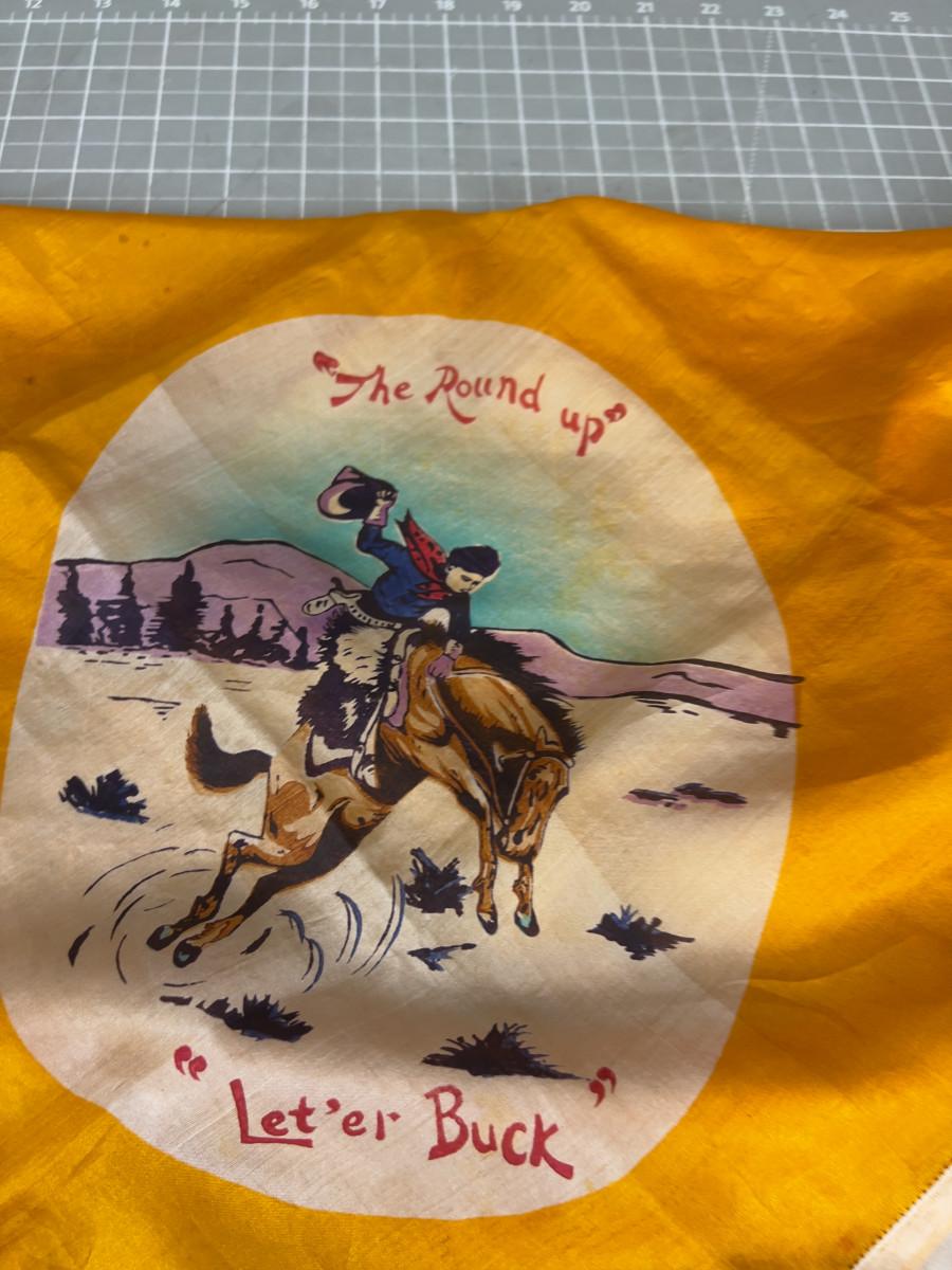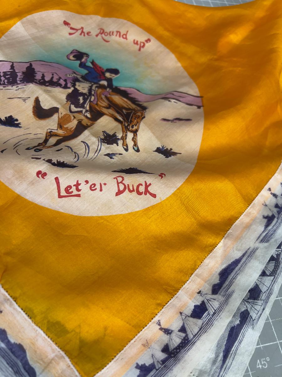 MOST AWESOME Silk Cowboy Scarf "Let'er Buck" LOVELY Village around the Edge