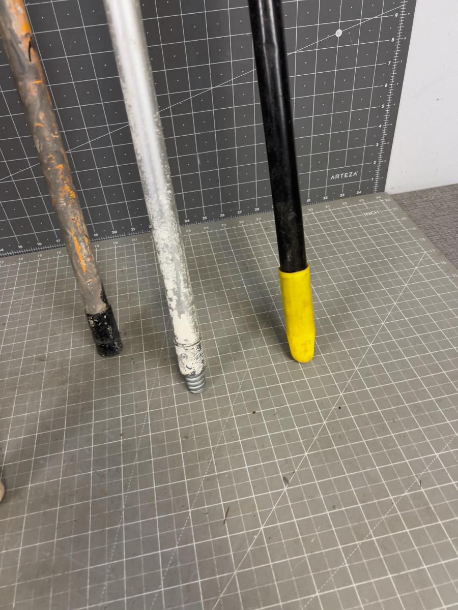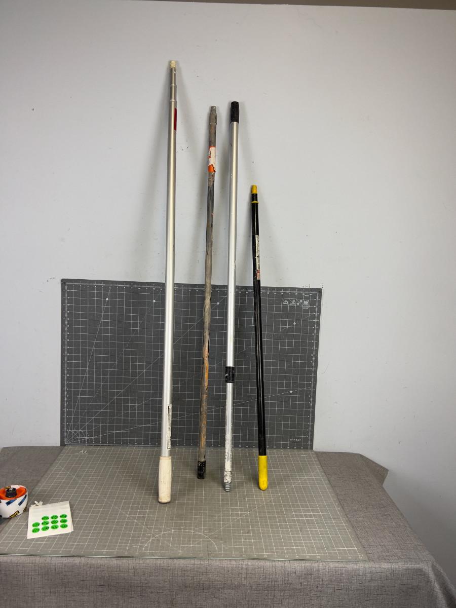 Mostly Adjustable Height Paint Sticks Wood and Aluminum.