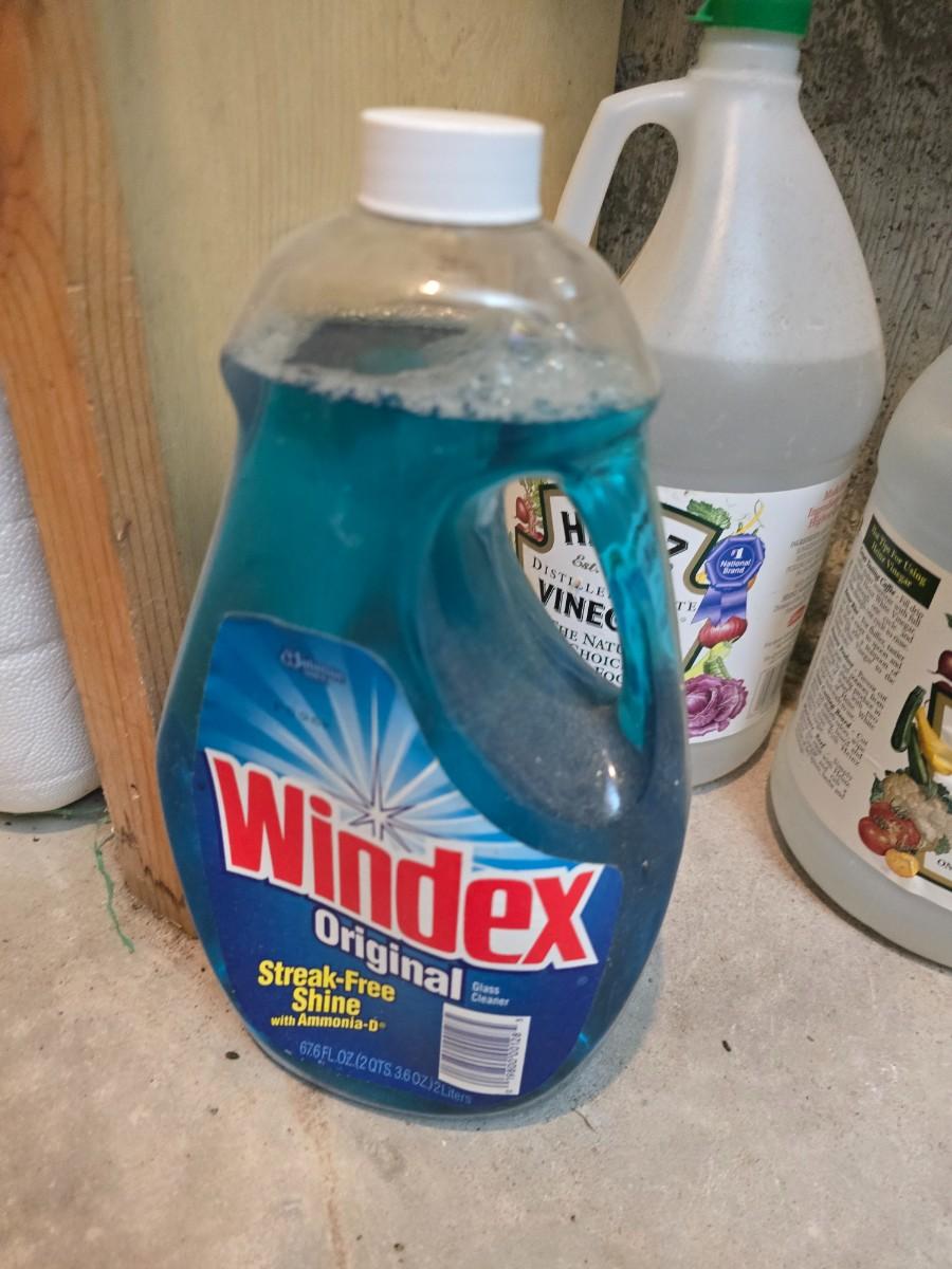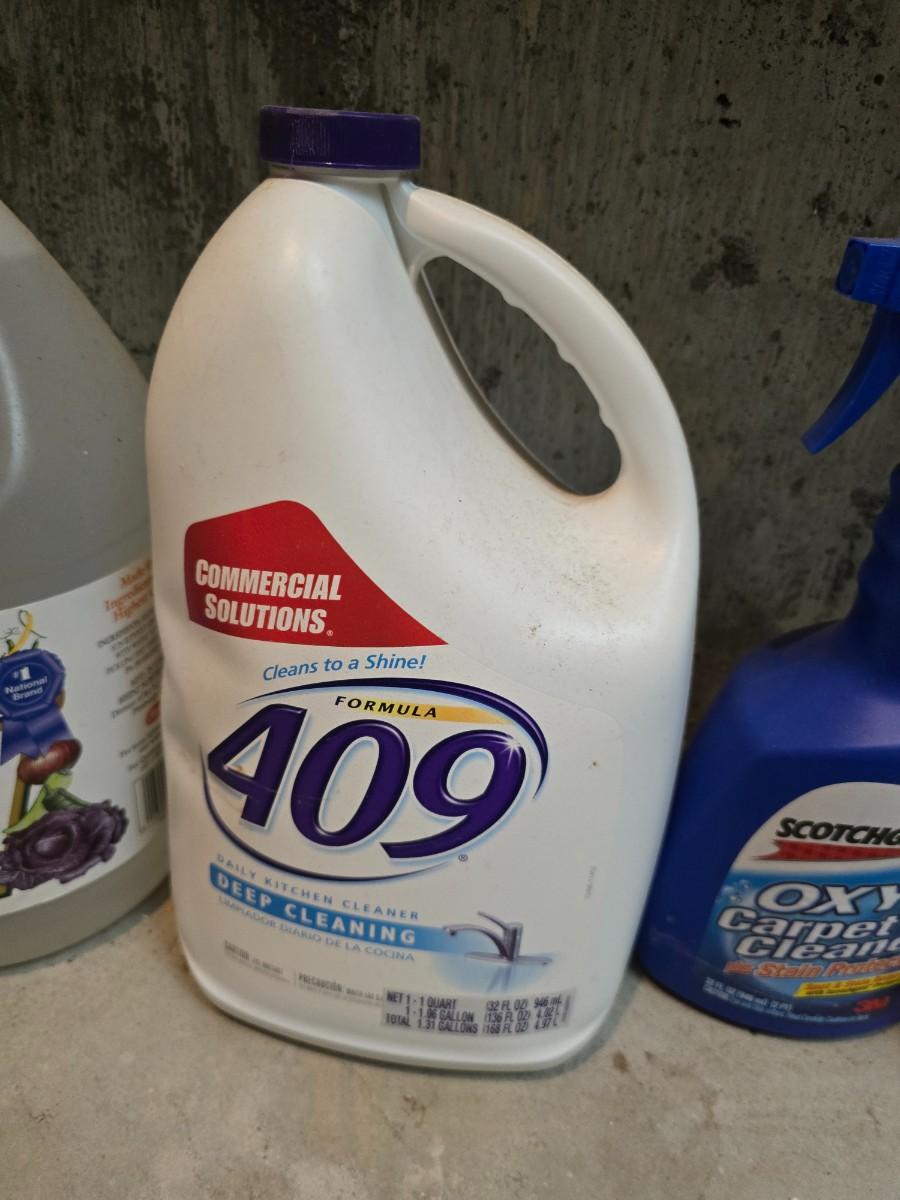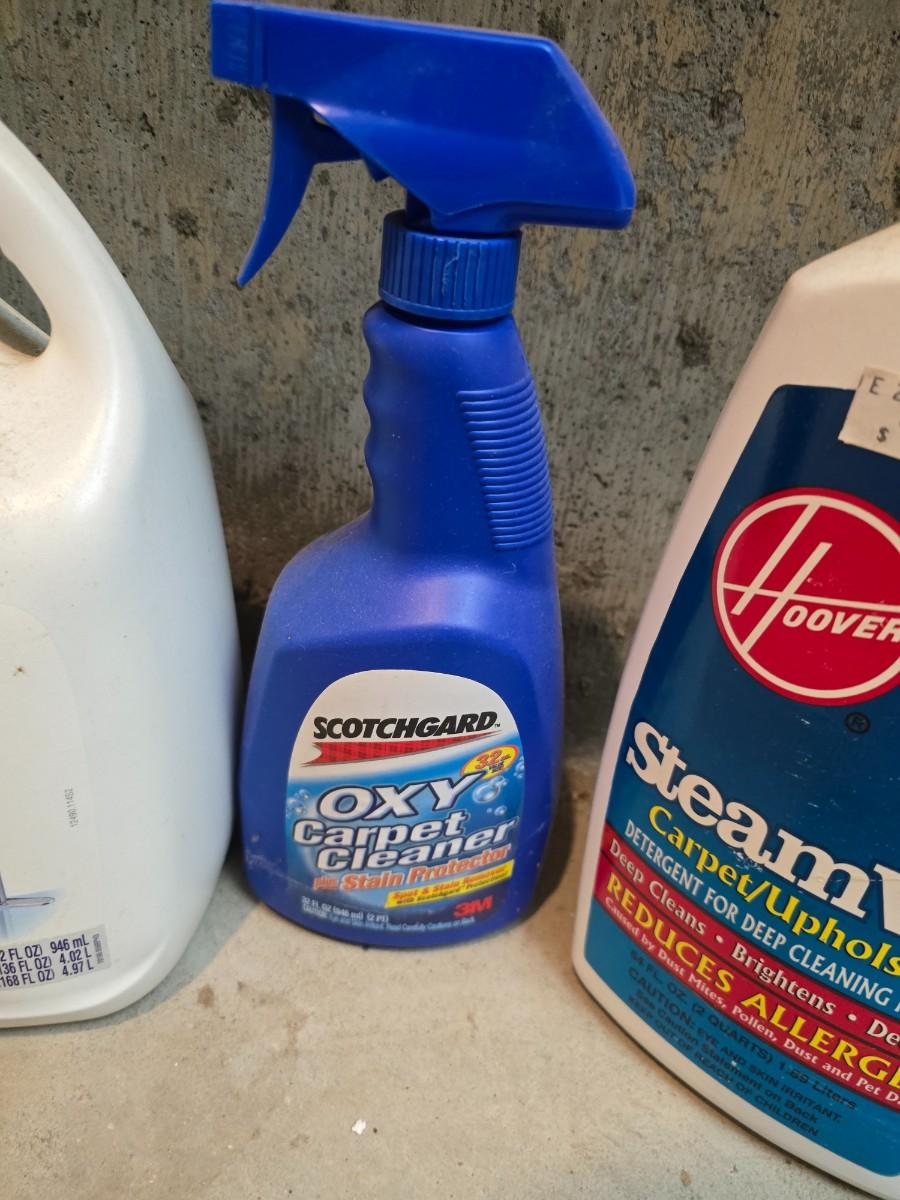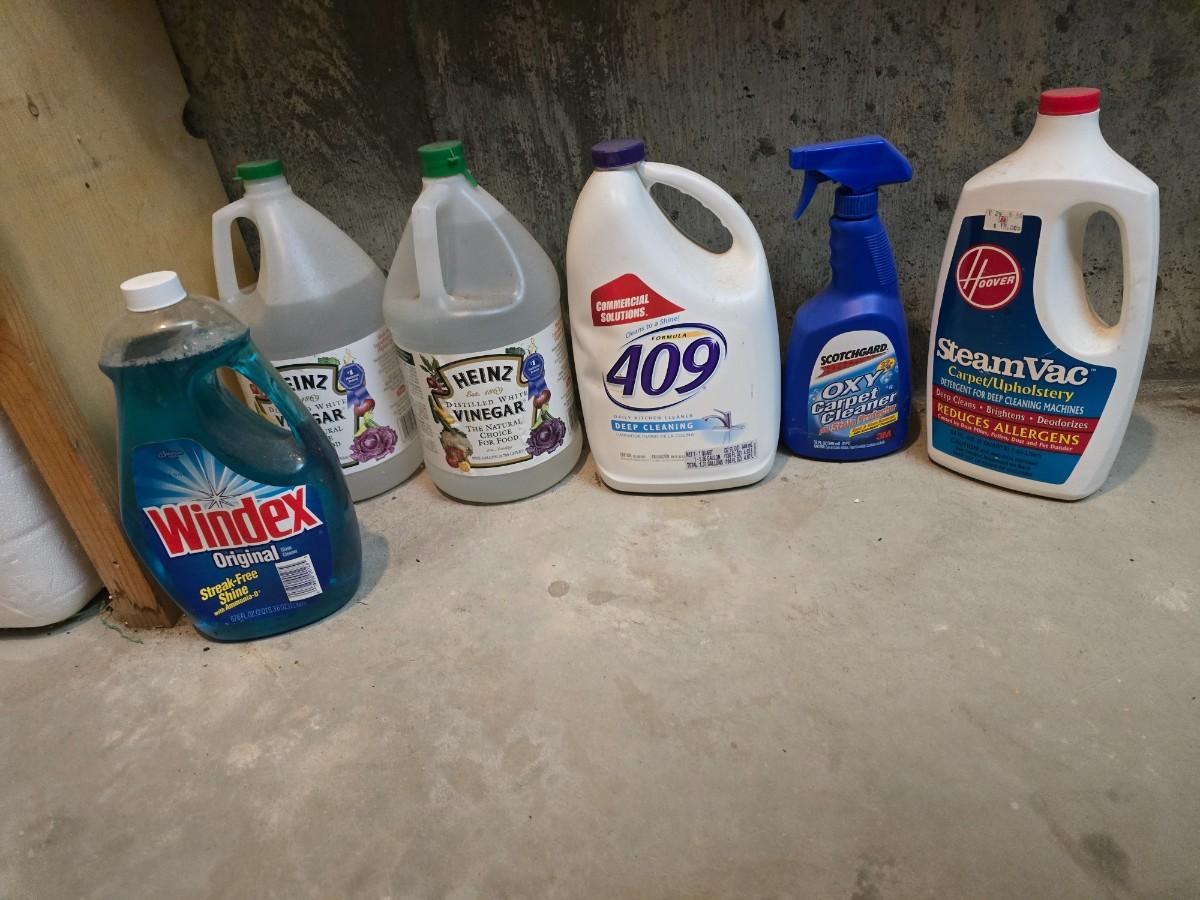 Mostly full bottles of cleaning supplies - Steamvac - Oxy - 409 - Windex and more