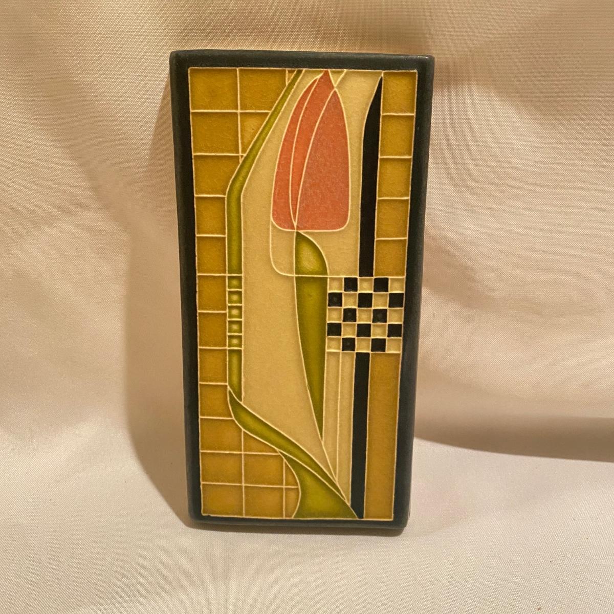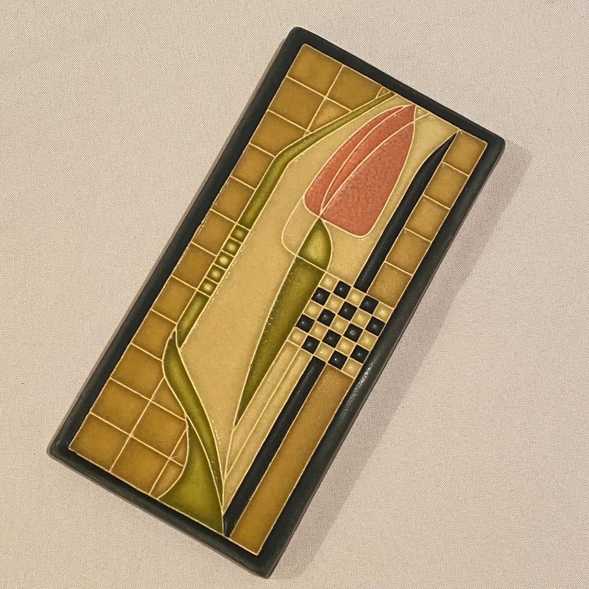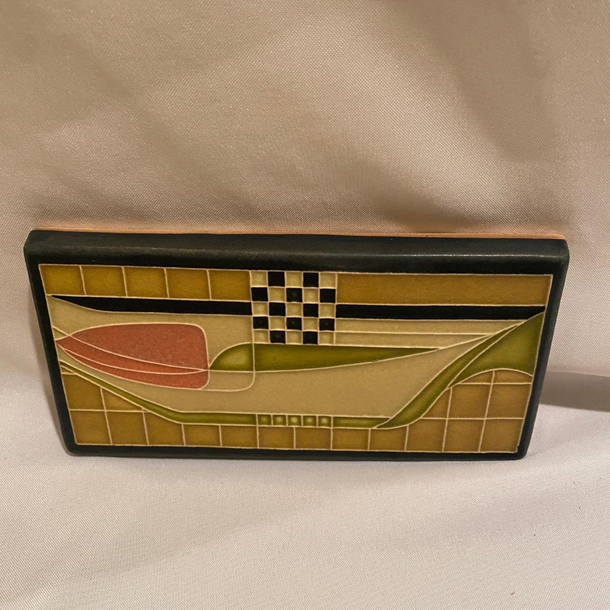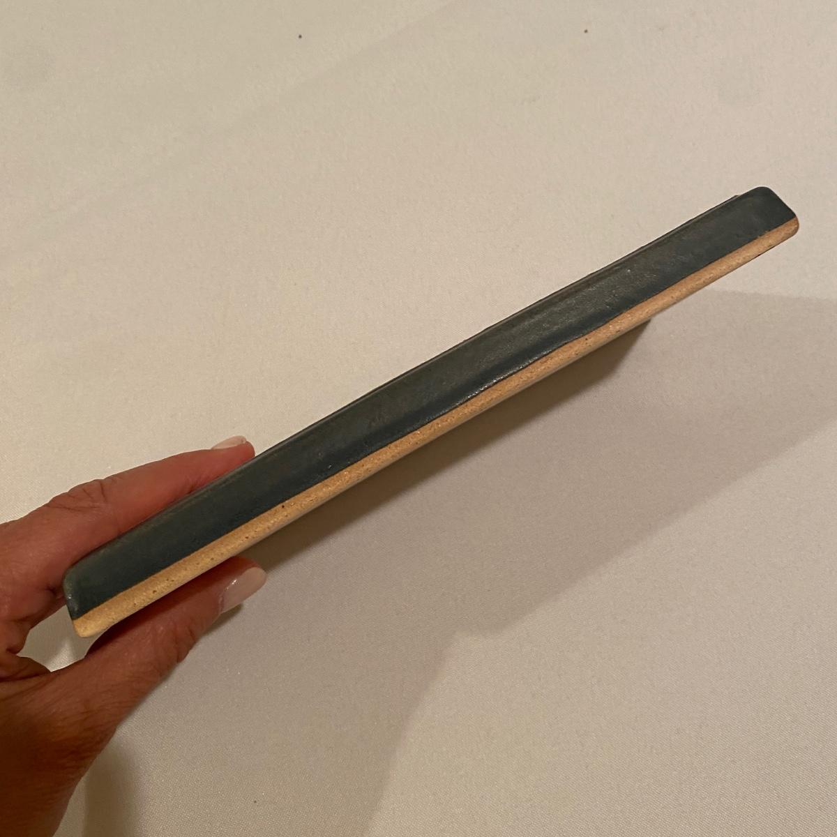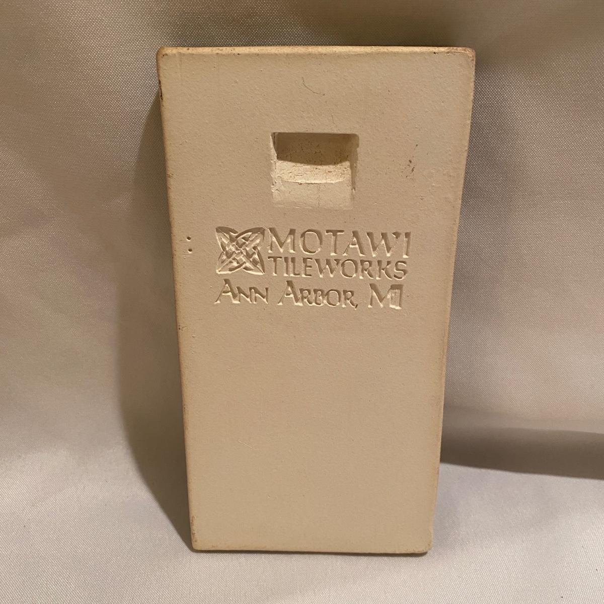 Blue green tile that can be hung on wall. Made in Ann Arbor, MI. Measures 8” x 4” and about 1/2” thick. Shipping available.