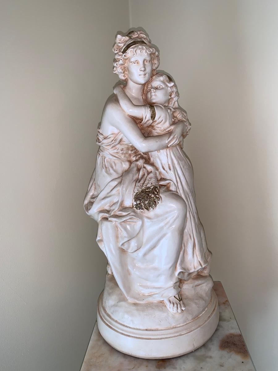 Plaster statue of mother and daughter. Artistic Royal Krafts.