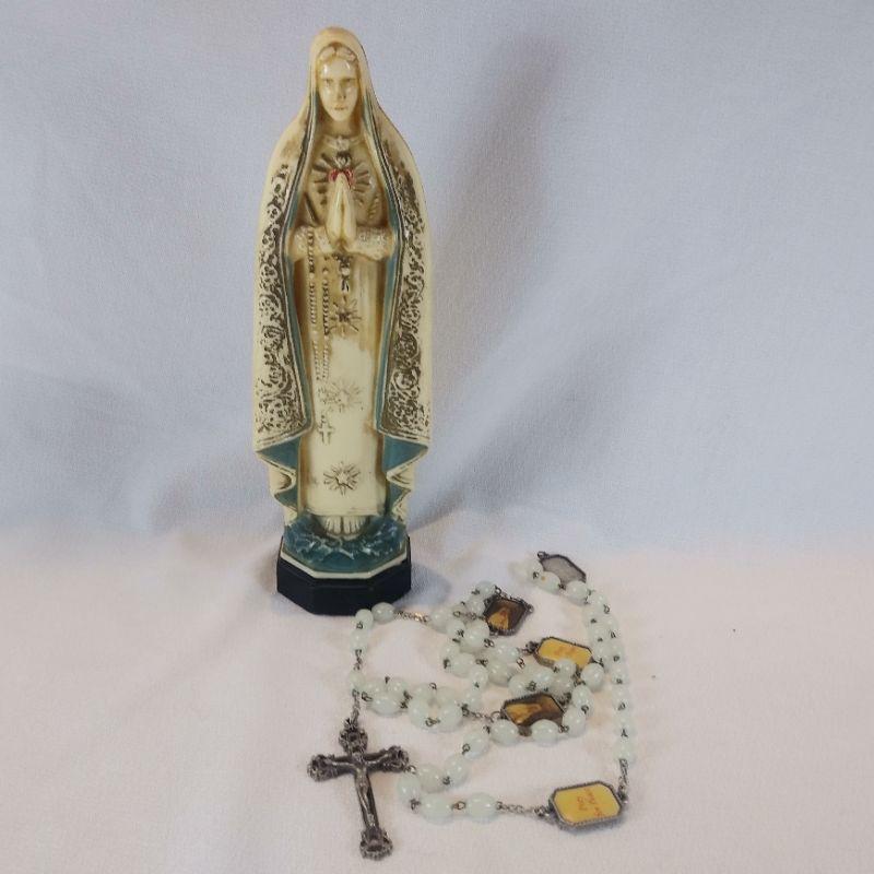 Vintage Mother Mary Statue Rosary Holder & Rosary