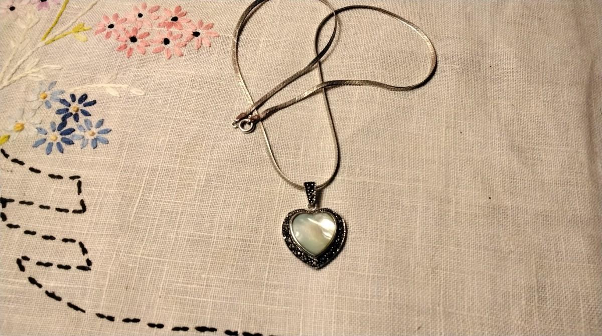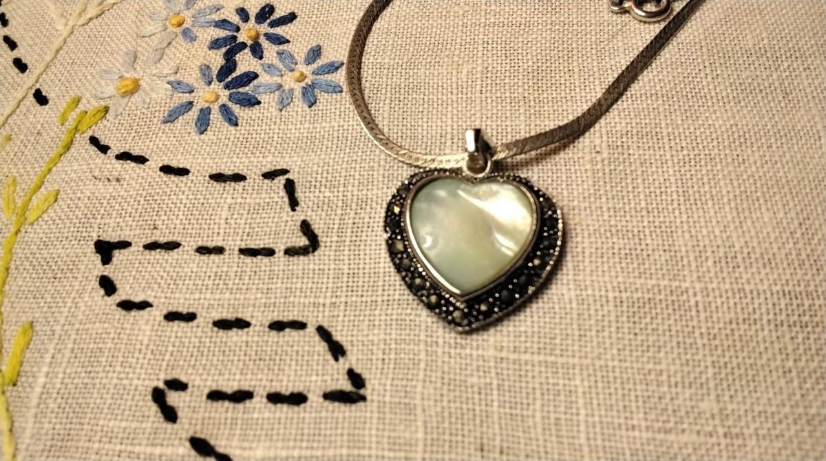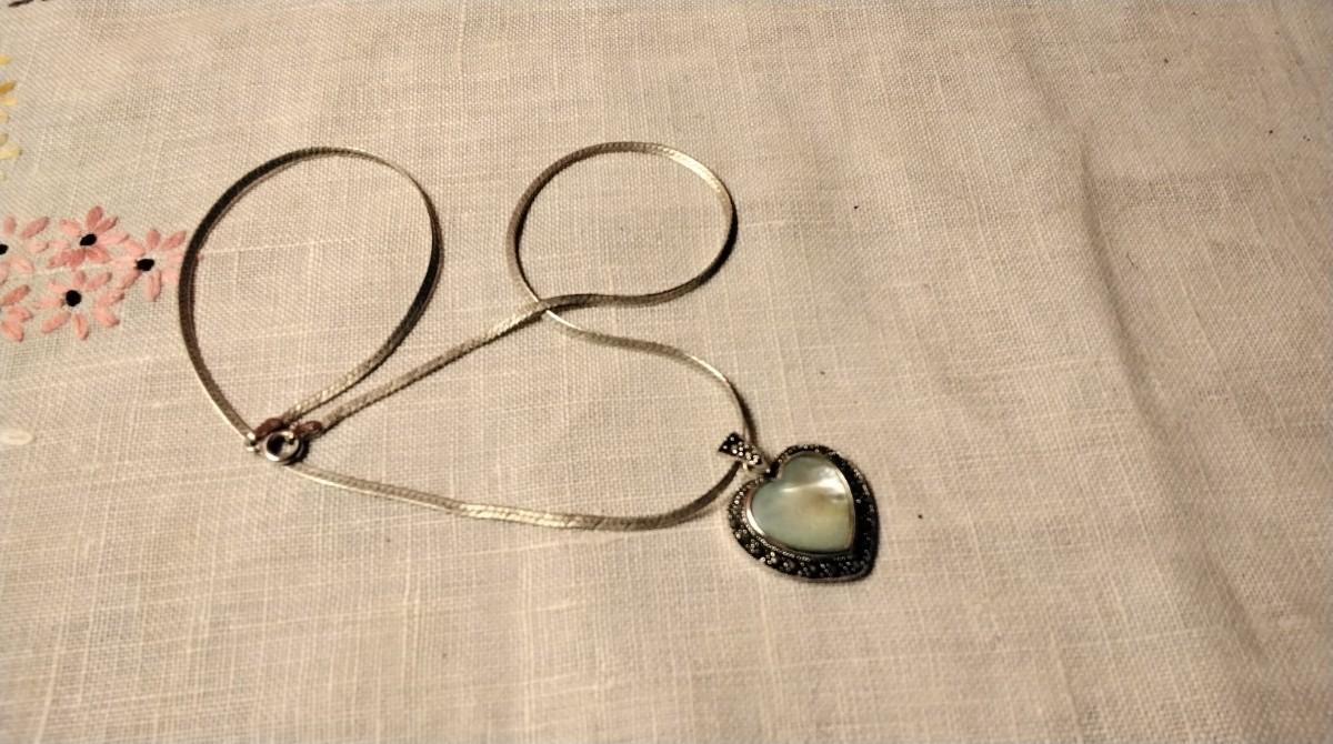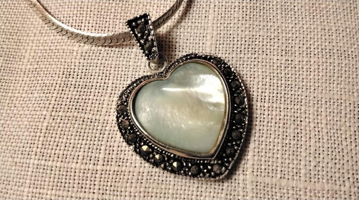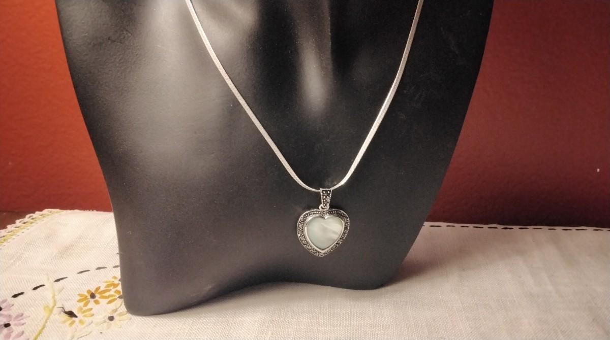 The design around this stunning mother of pearl heart makes this one breathtaking necklace!