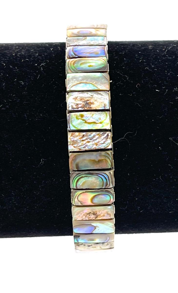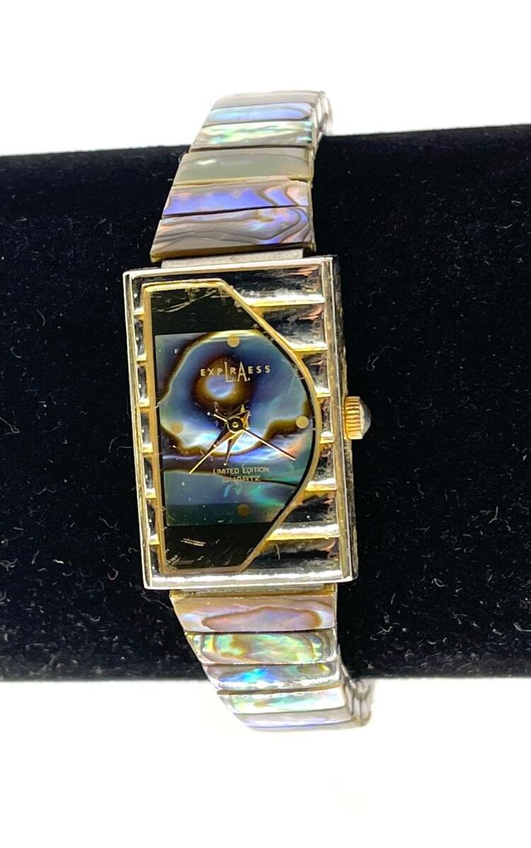 Mother of Pearl Abalone Shell Stretch Band Ladies Watch. Not running, but in good condition.