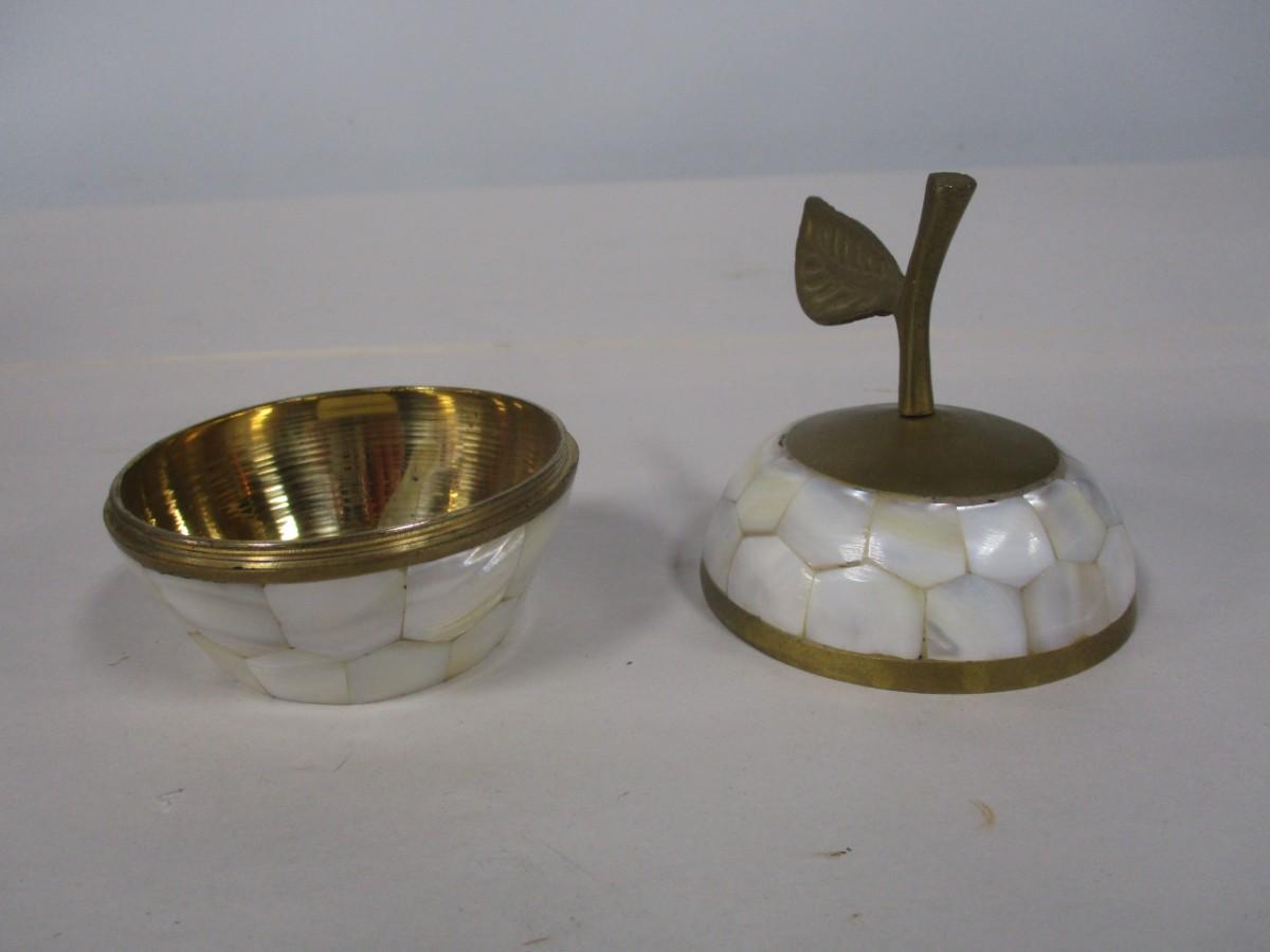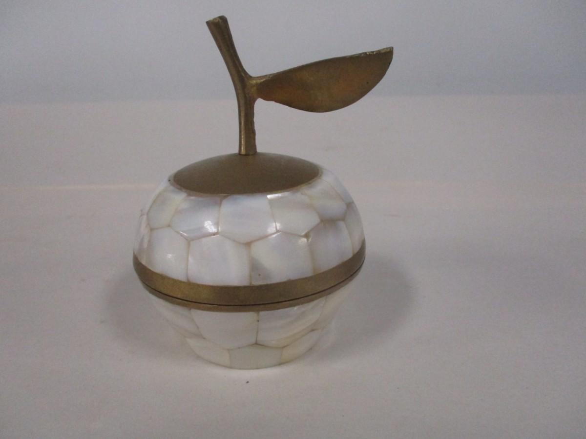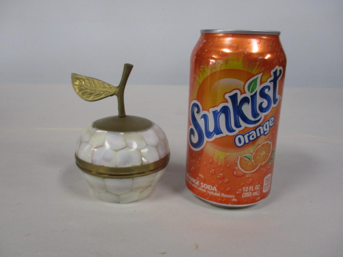 Mother Of Pearl & Brass Apple Shaped Trinket Container Choice 1