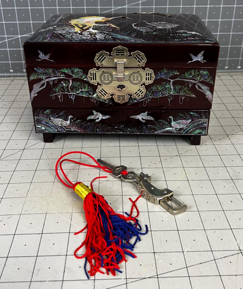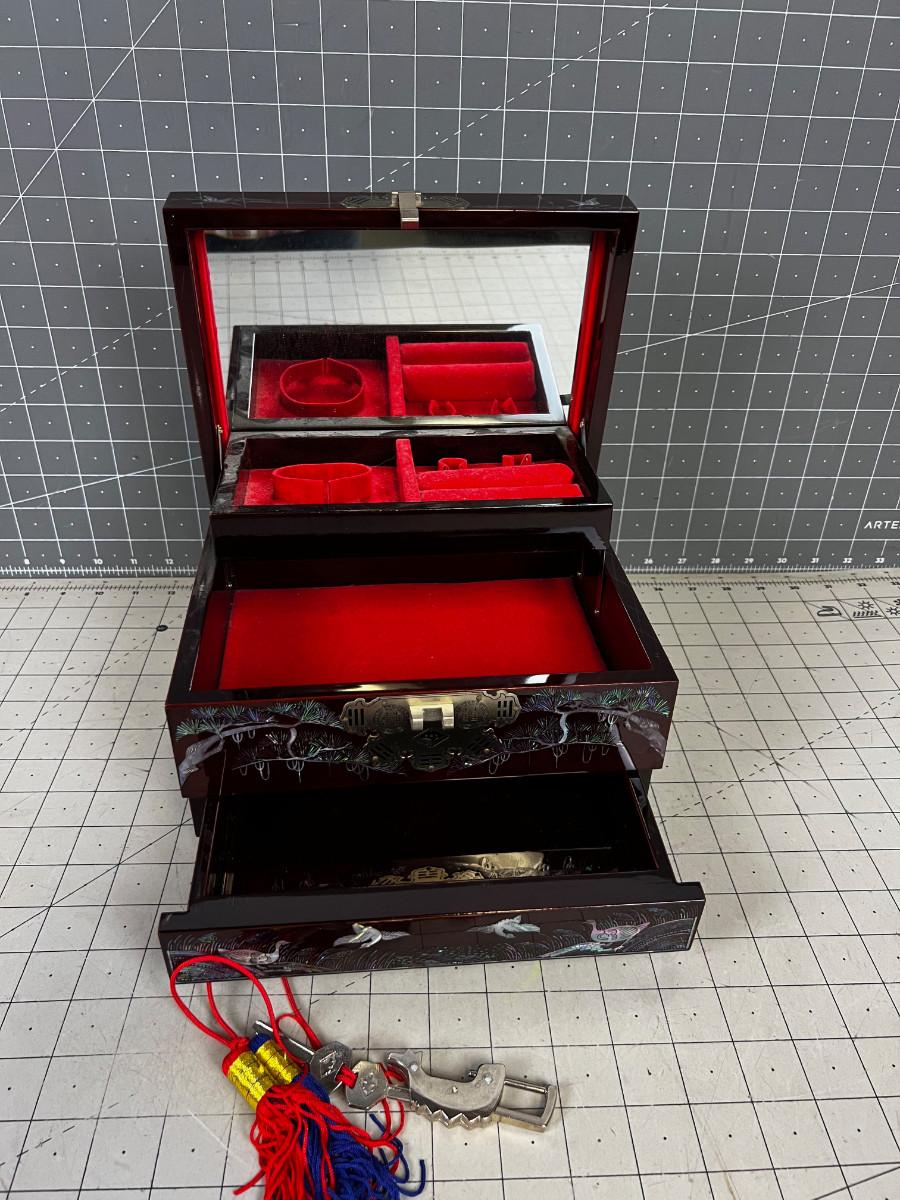 Measures 9 x7 x6" Excellent Condition with Key and Lock. NICE - Great Gift!