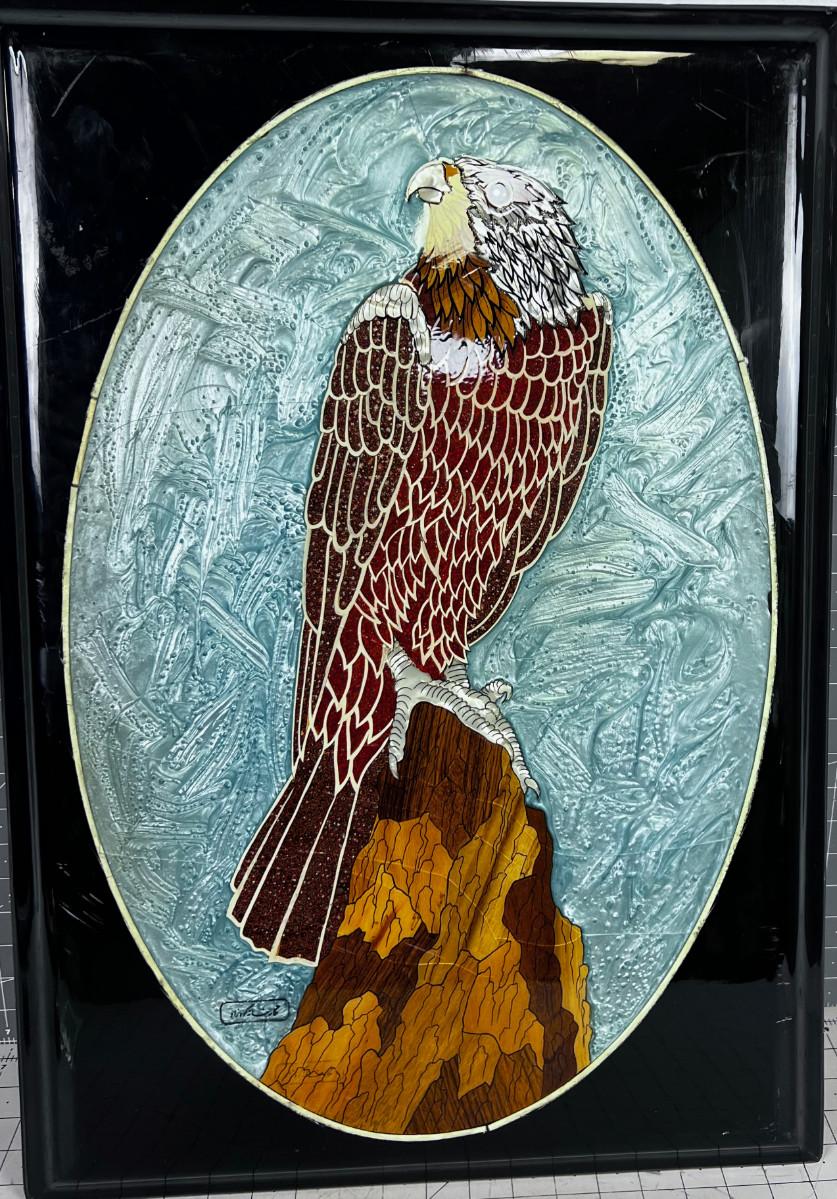 Mother OF Pearl INLAY of a HAWK Picture Signed