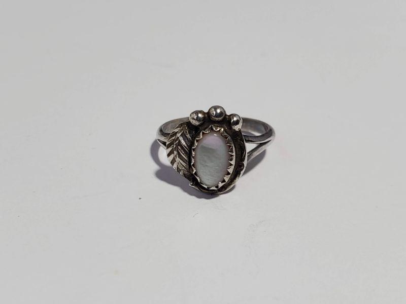 Mother of Pearl Sterling Silver Ring w/ Leaf Pattern
