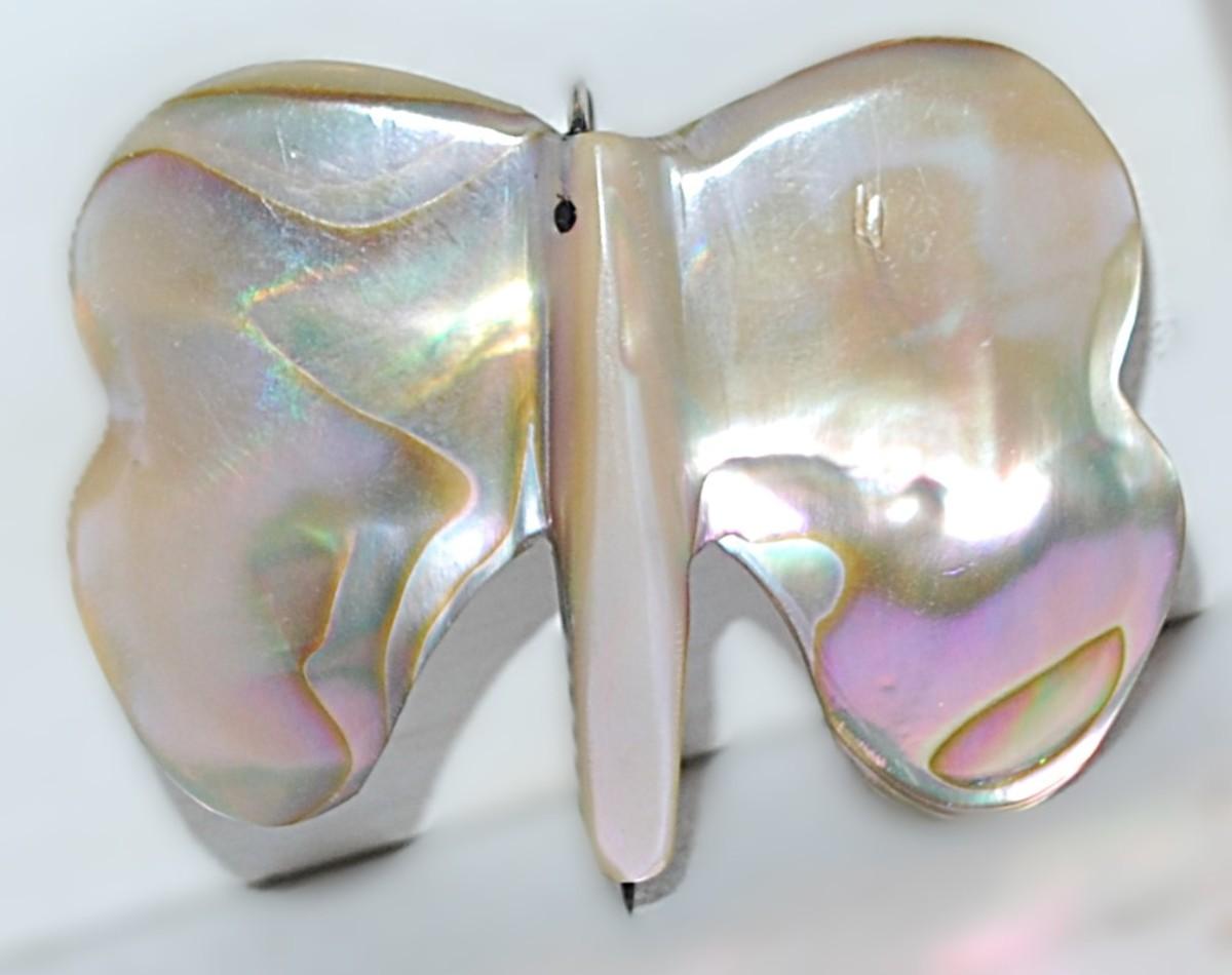 Mother-of-Pearl MOTH BROOCH (1¾" x 1¼") NOTE: This has an OPEN PIN--NO LOCK