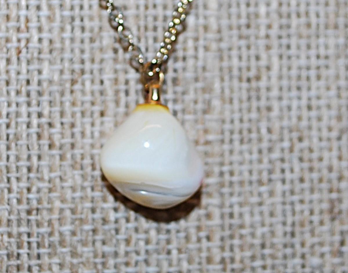 Mother-of-Pearl Odd-Shaped Marble PENDANT (½" Circ.) on a Brass Colored Necklace Chain 14" L