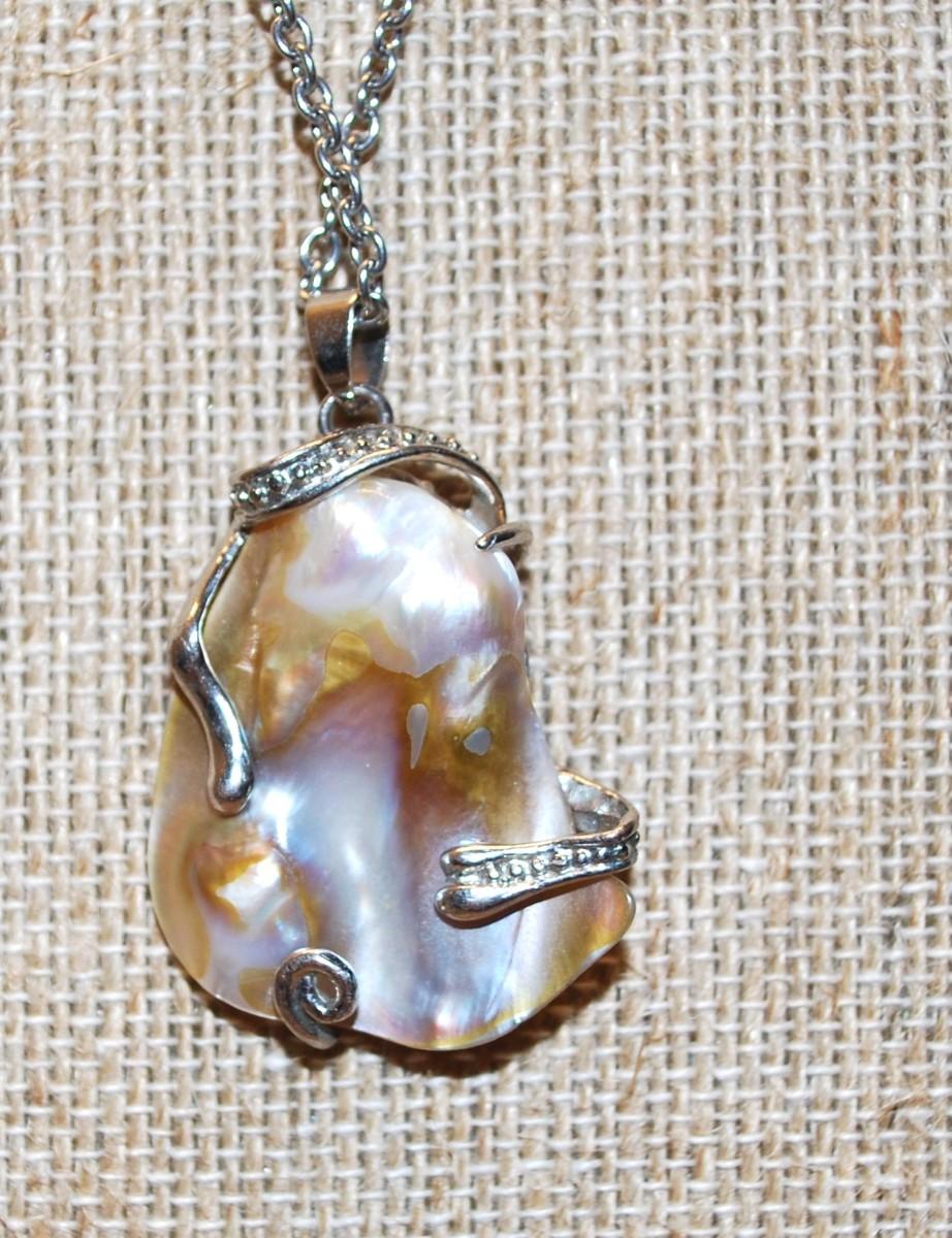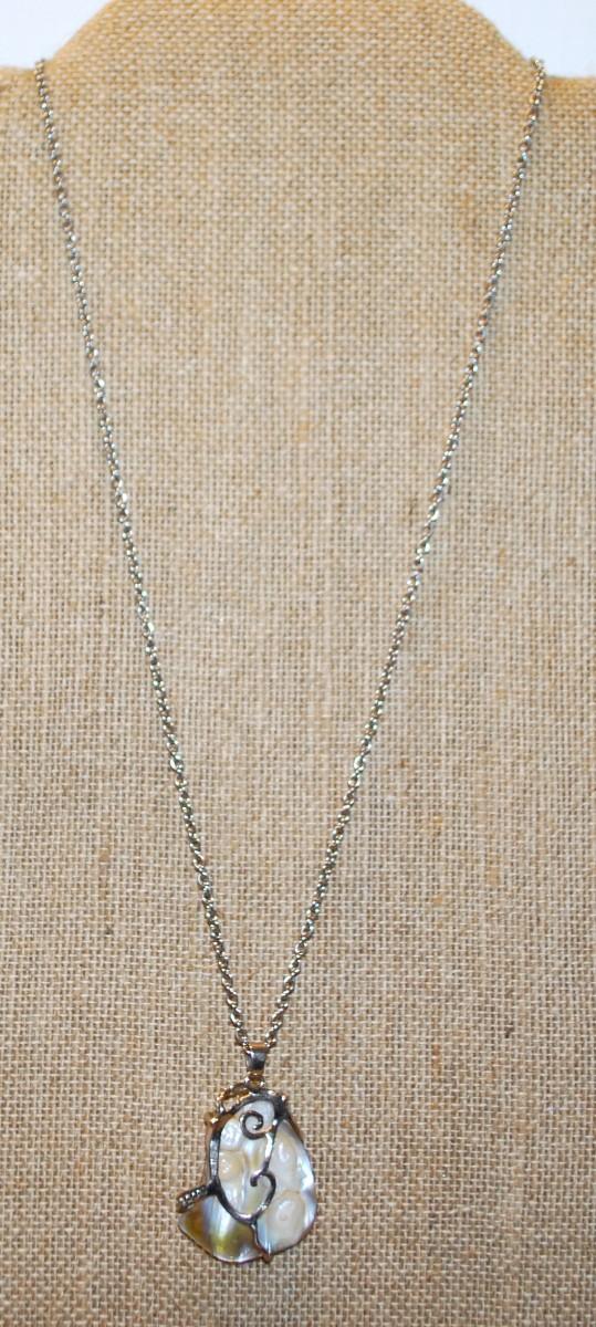 Mother-of-Pearl Oyster Style PENDANT (1 ¼" x 1") Necklace 20" L