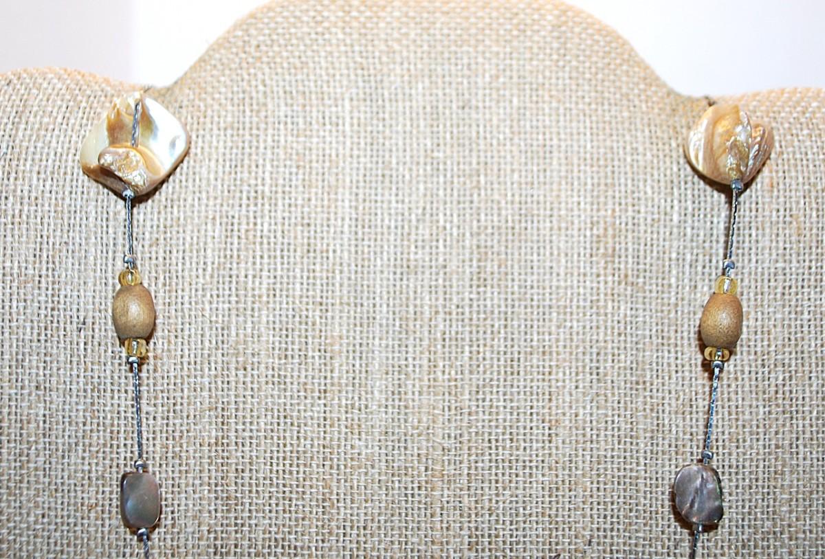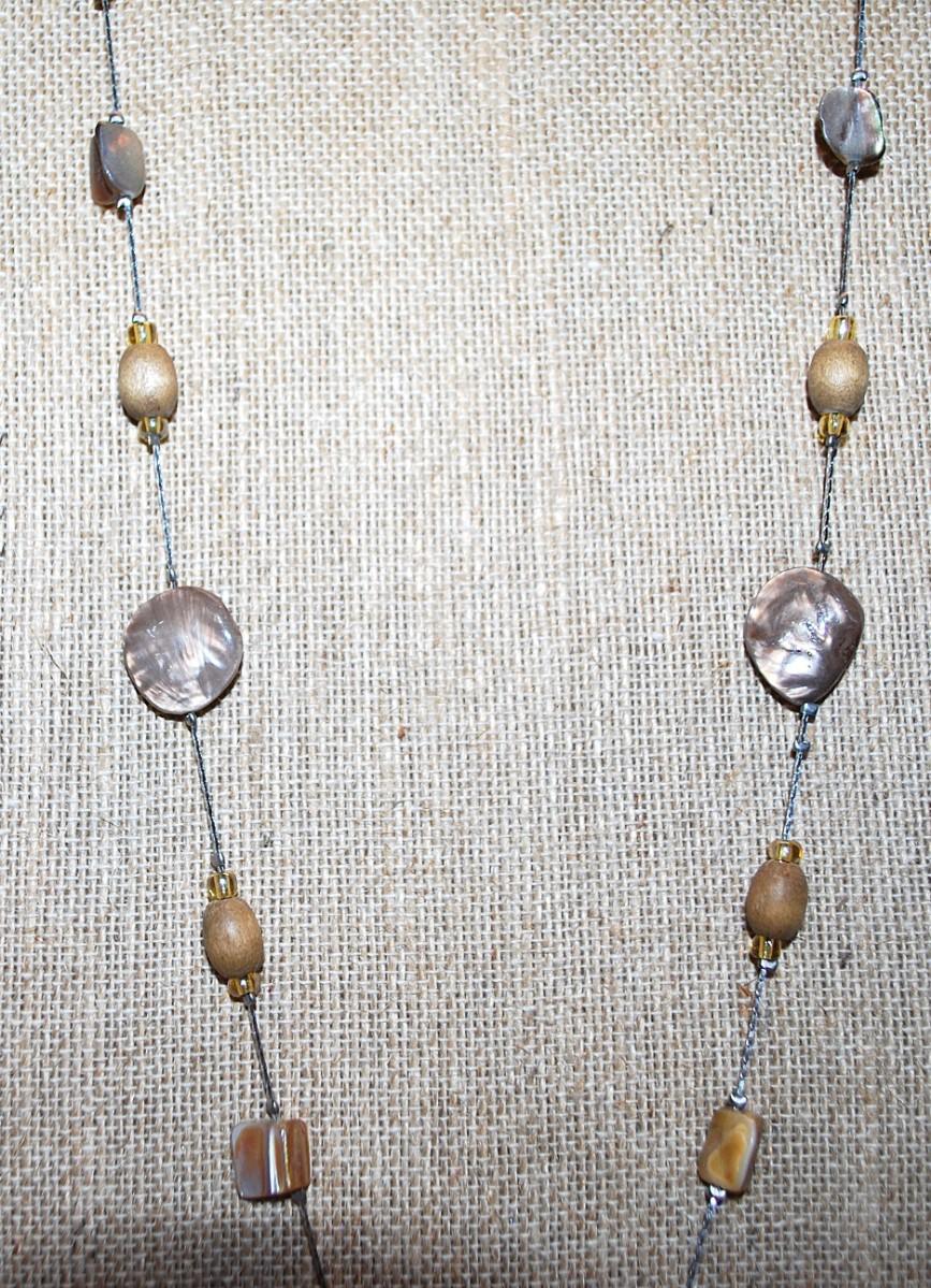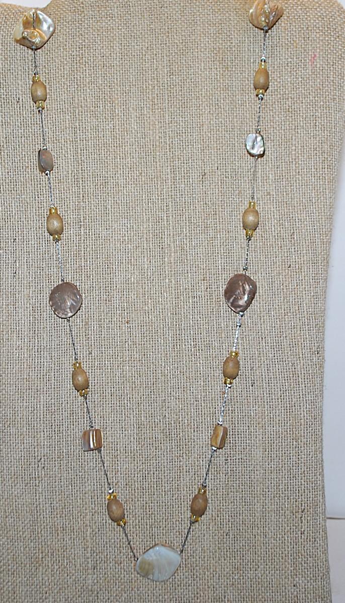 Mother-of-Pearl Style NECKLACE with Wooden Bead Accents and Lobster Clasp 36" L