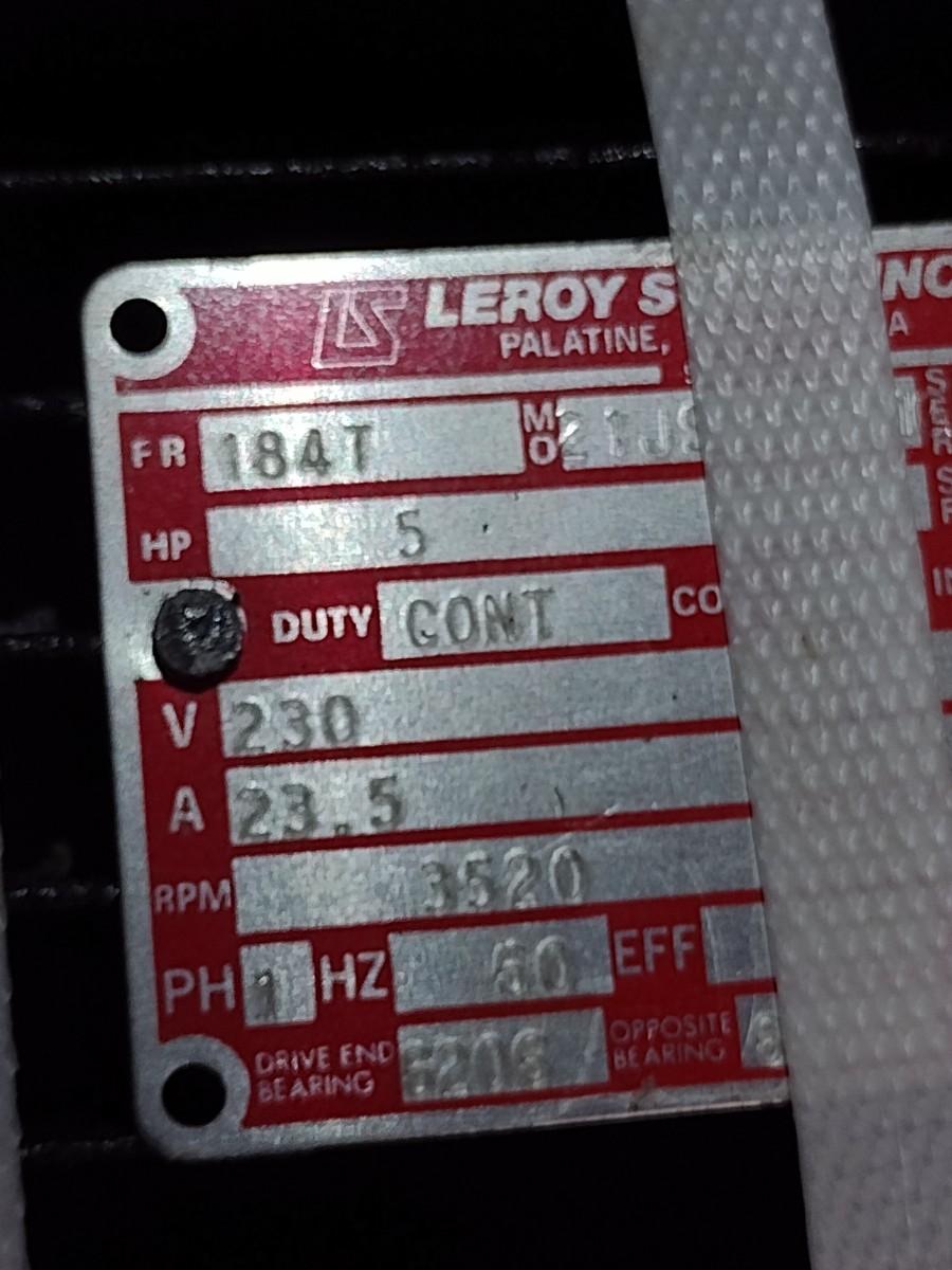 Leroy Somer Electric 5 HP Motor 230V 23.5 Amp