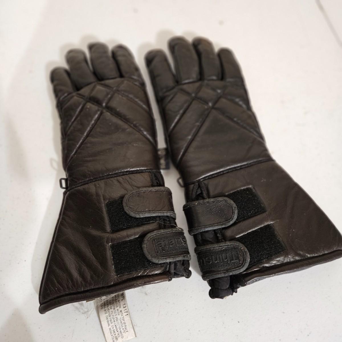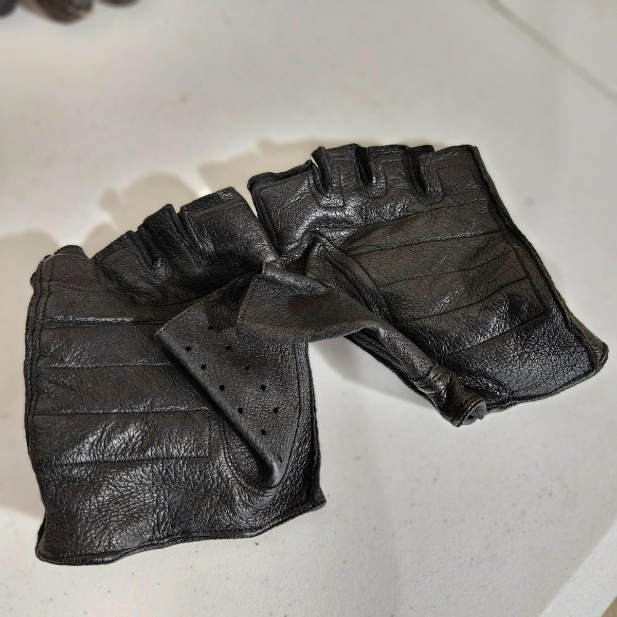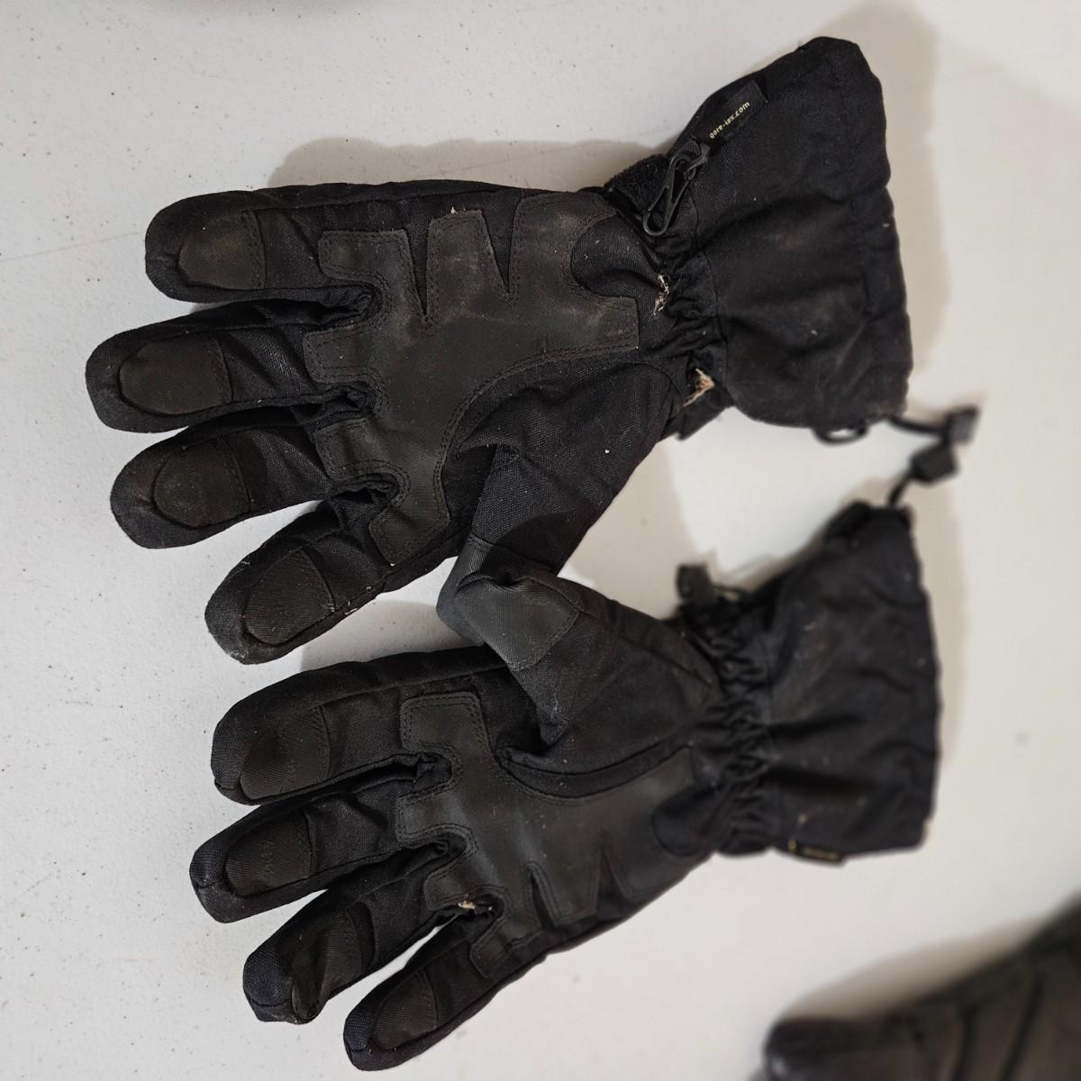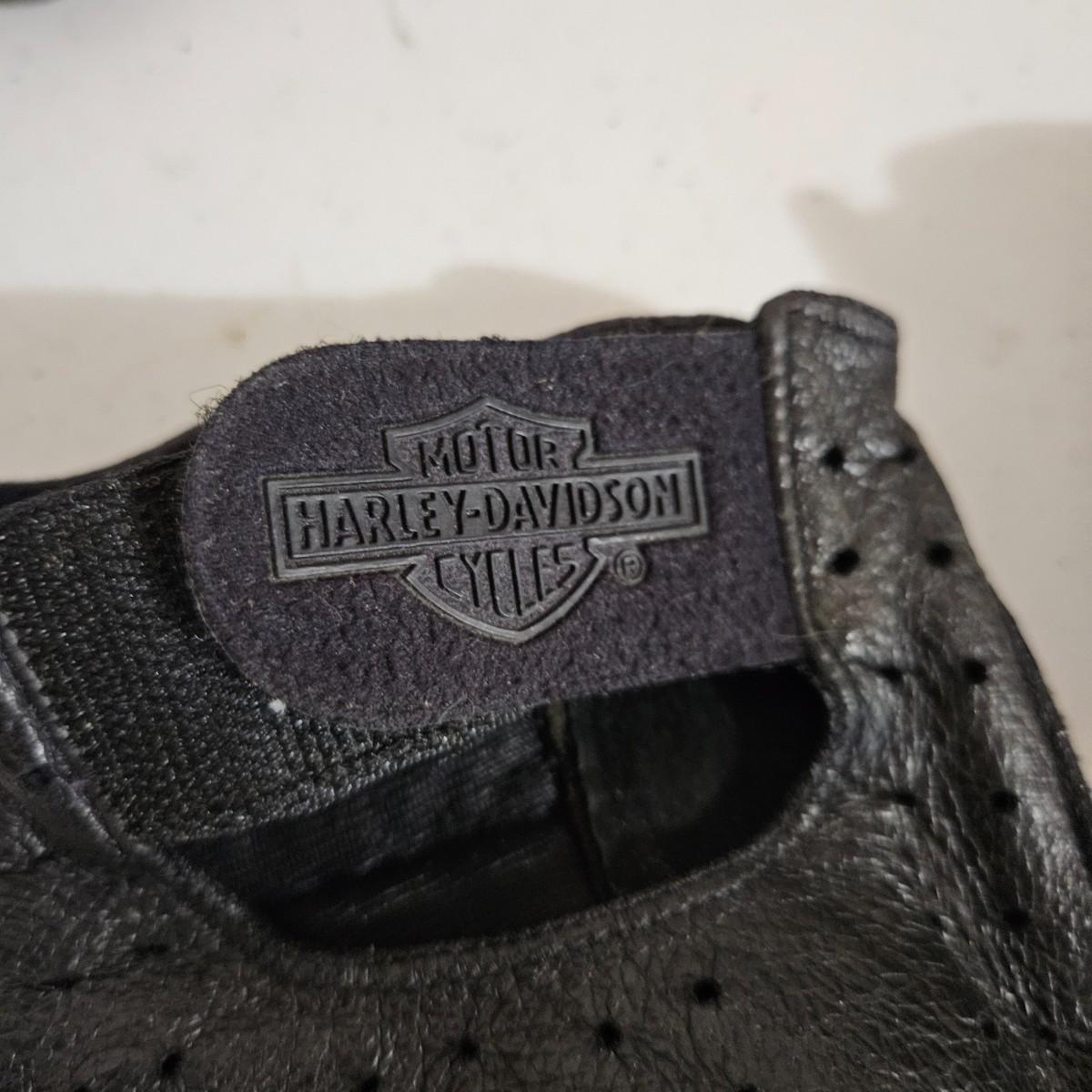 Four pairs of motorcycle gloves that three pairs are Harley Davidson branded and on pair is Olympia. The Olympia and fingerless gloves are leather and the other pair are fabric, cold weather gloves. All are size M and the Olympias are size S. Shipping available