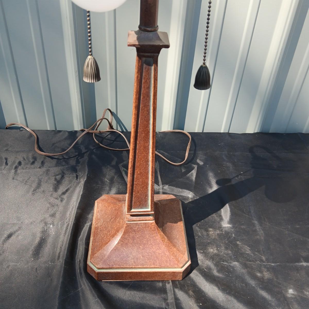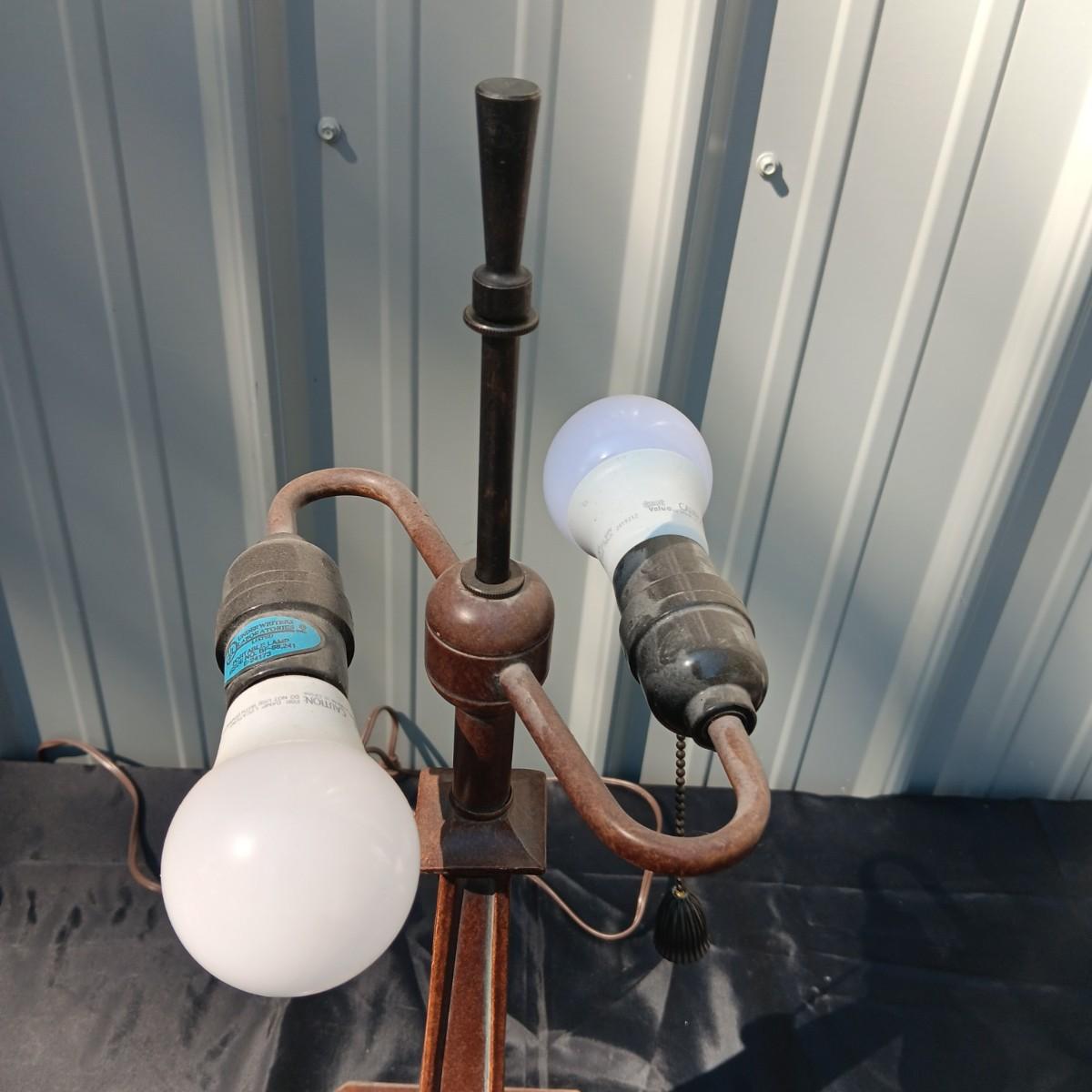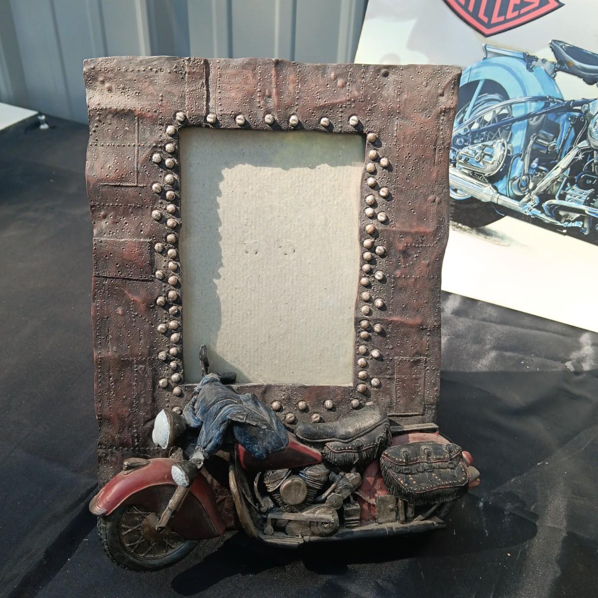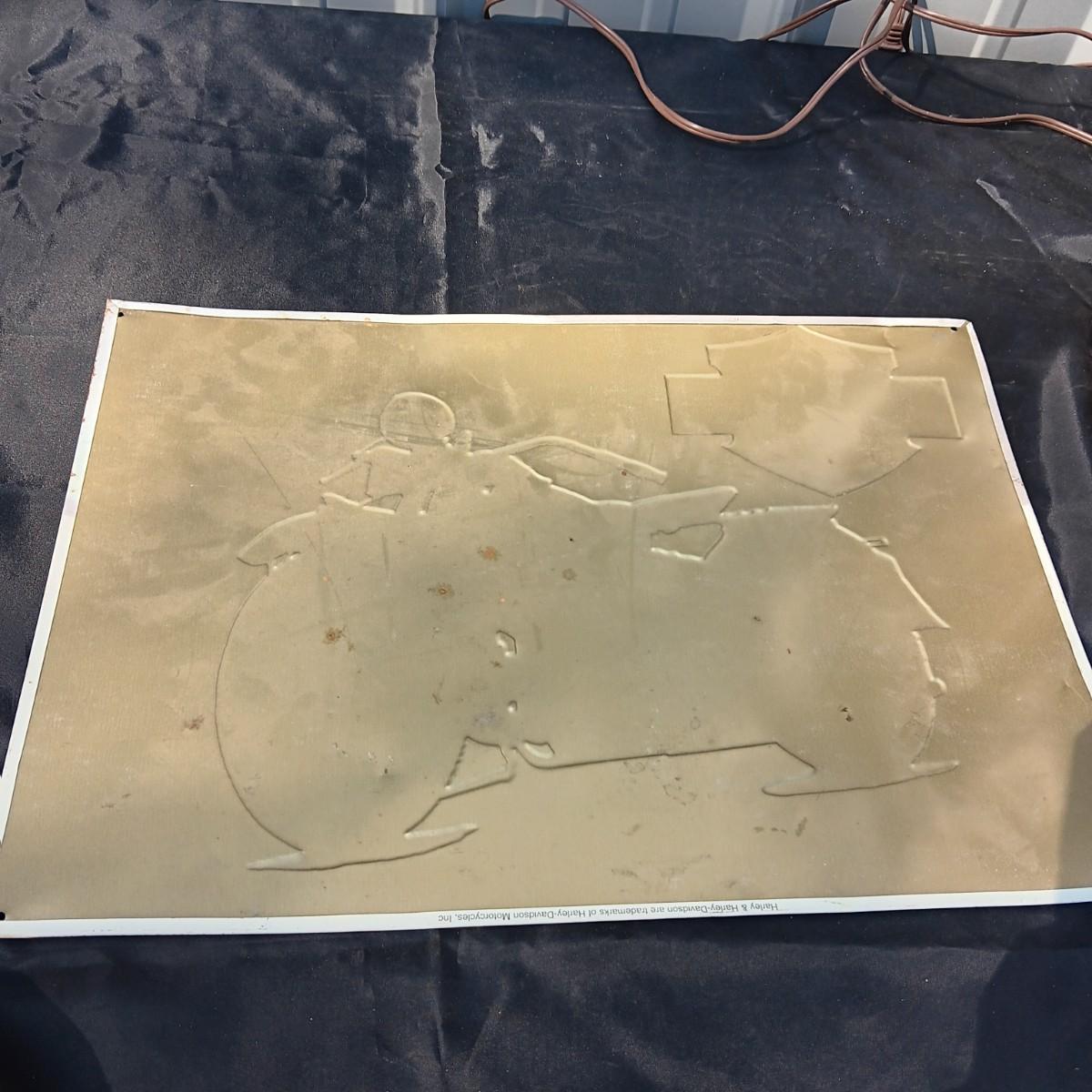 MOTORCYCLE DOUBLE LIGHT GLASS SHADED LAMP, HARLEY DAVIDSON TIN SIGN, PLATE AND FRAME