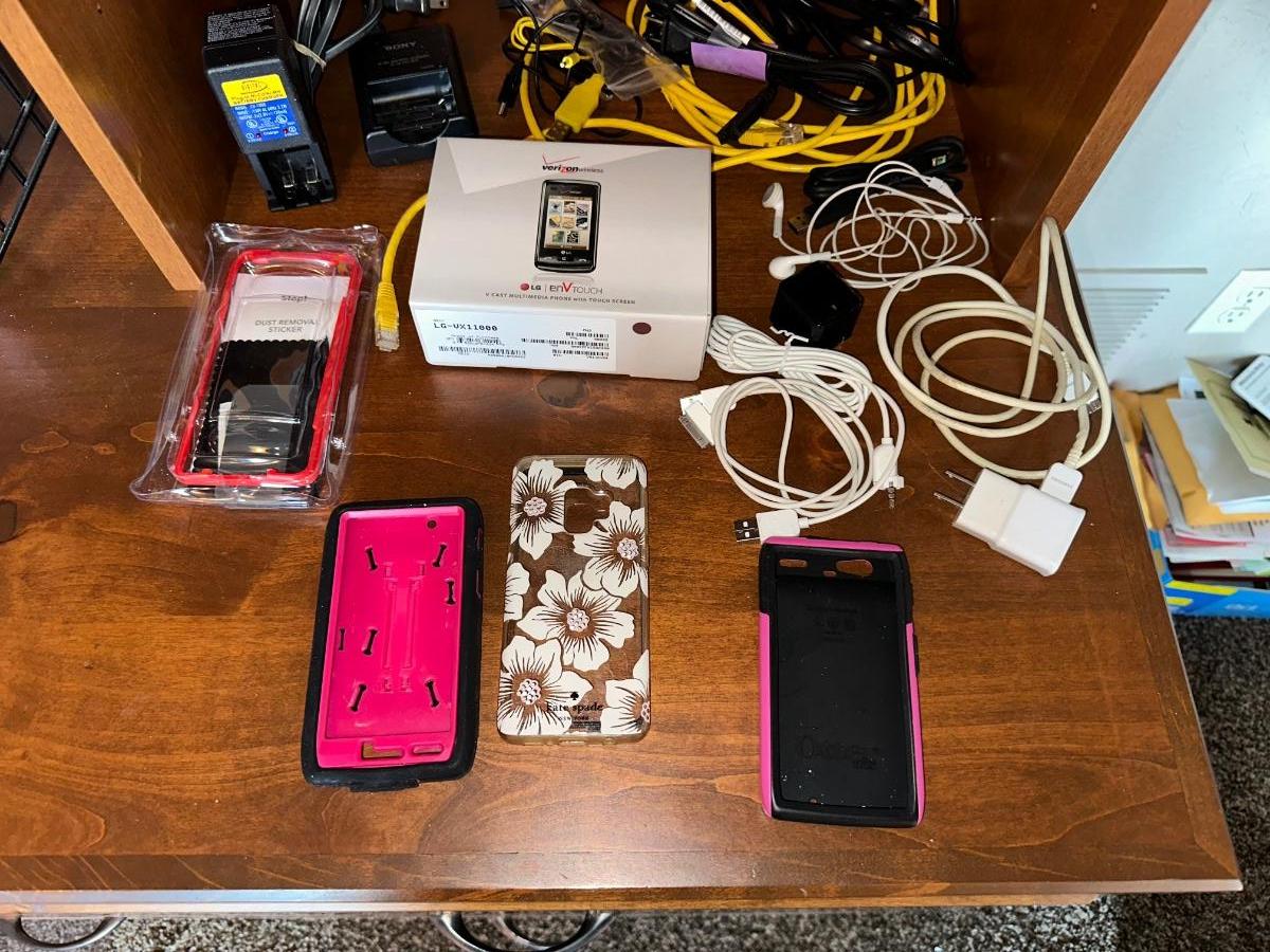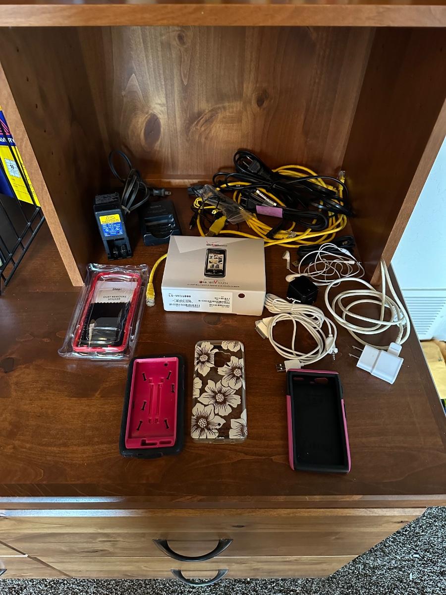 MOTOROLA FLIP PHONE, CELL PHONE CASES AND CHARGERS PLUS MORE