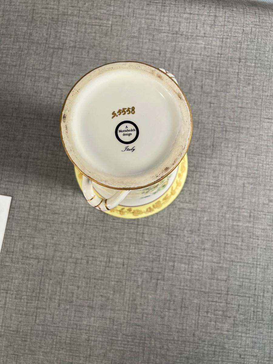 Mottahedah Design Porcelain Vase Floral Italy w/Handles