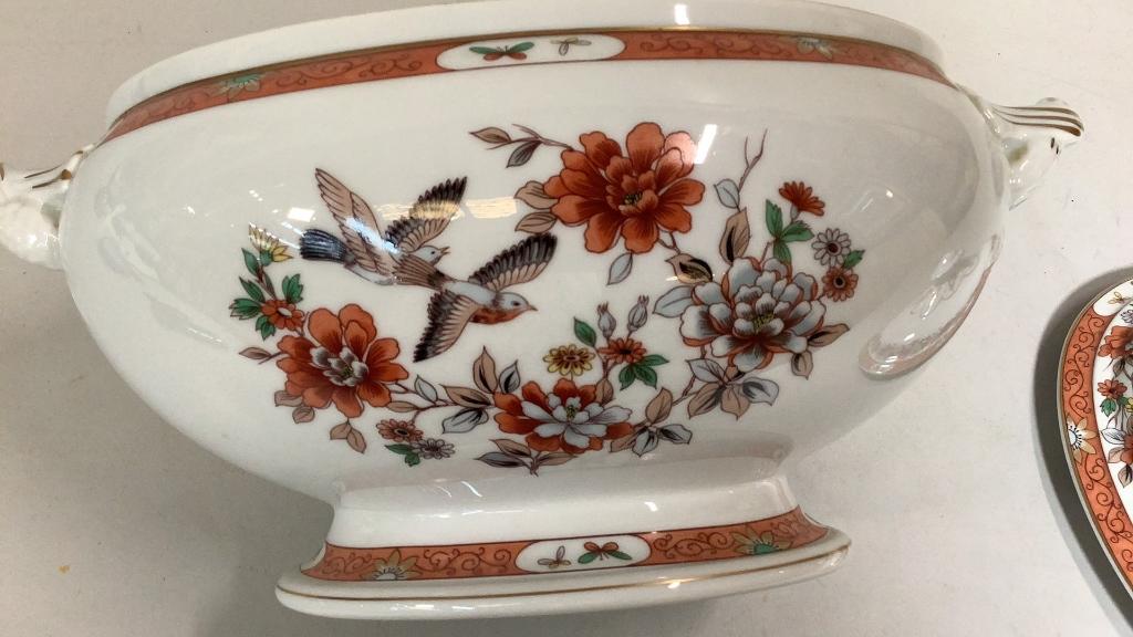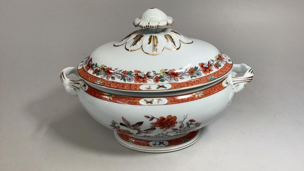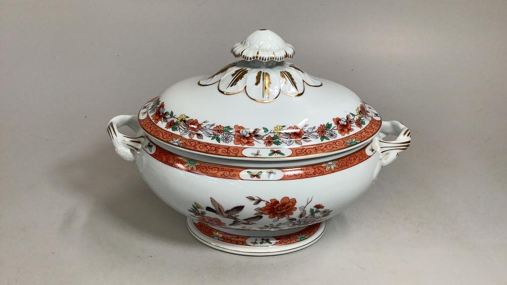 Porcelain Tureen in Magnolia pattern, prominent top knobÂ…lovely decorative with generous gilt trims, #38
