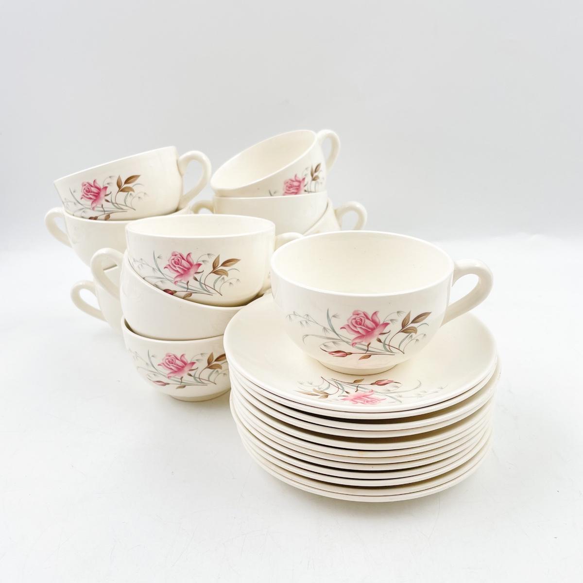 MOUNT CLEMENS “MT. ROSE” TEACUPS & SAUCERS (12)