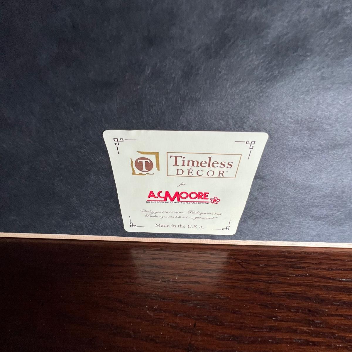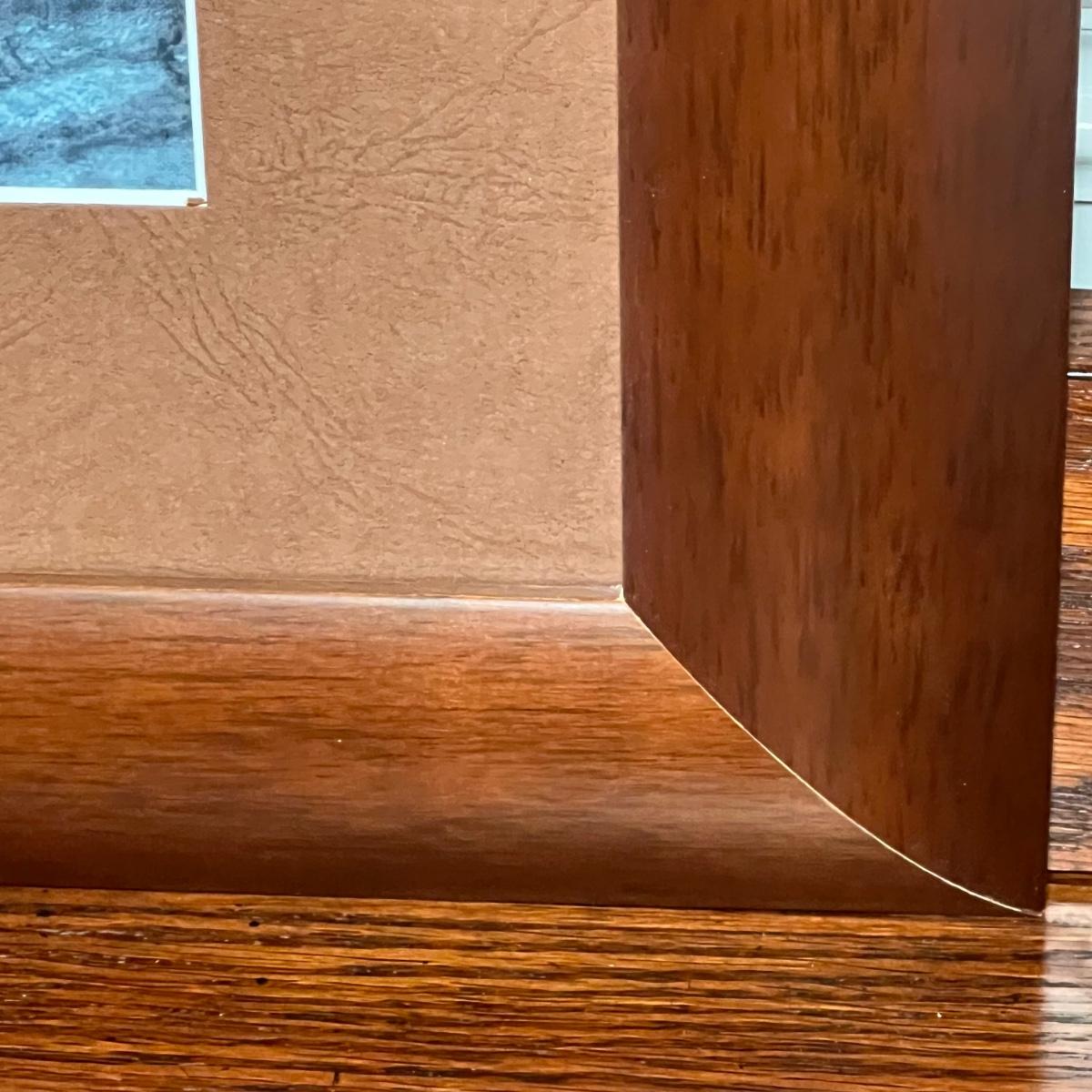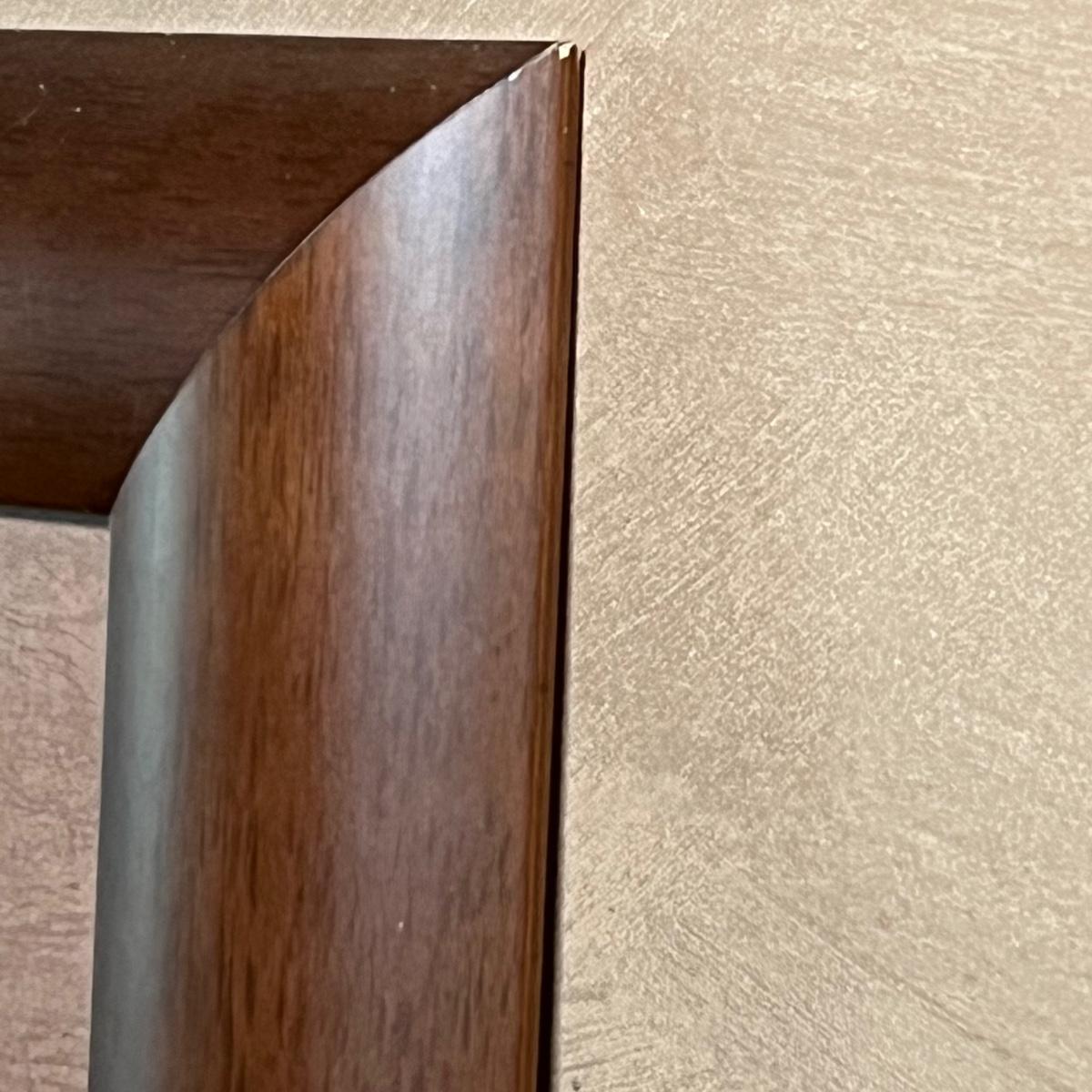 Frame is a wood like resin material and measures 43” x 30”.