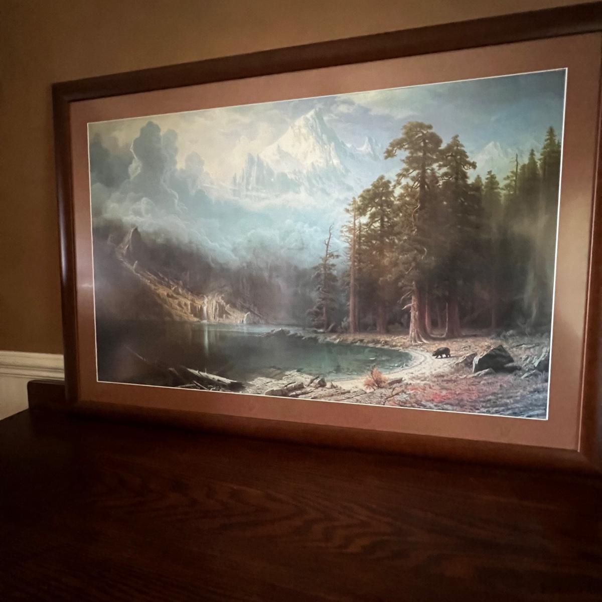 This large print appears to be from painter Albert Bierstadt, a piece titled Mount Corcoran but please note there are no visible identifying markings on this piece.