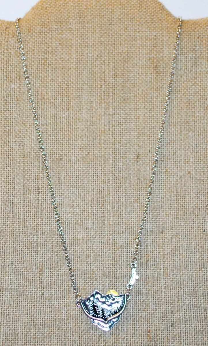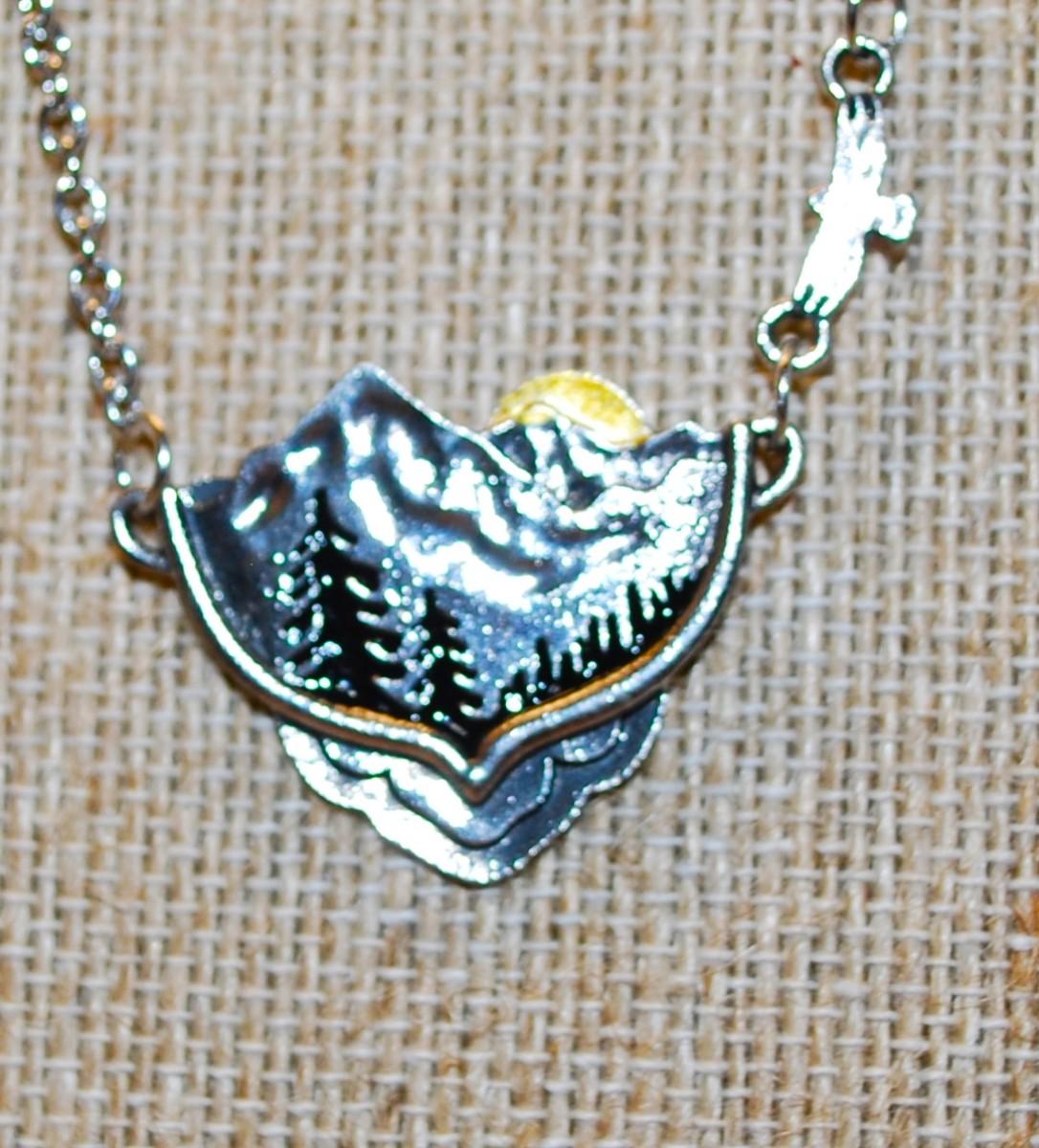 Mountain & Forest PENDANT (1½" x 1" ) on .925 Silver Necklace Chain 18" L