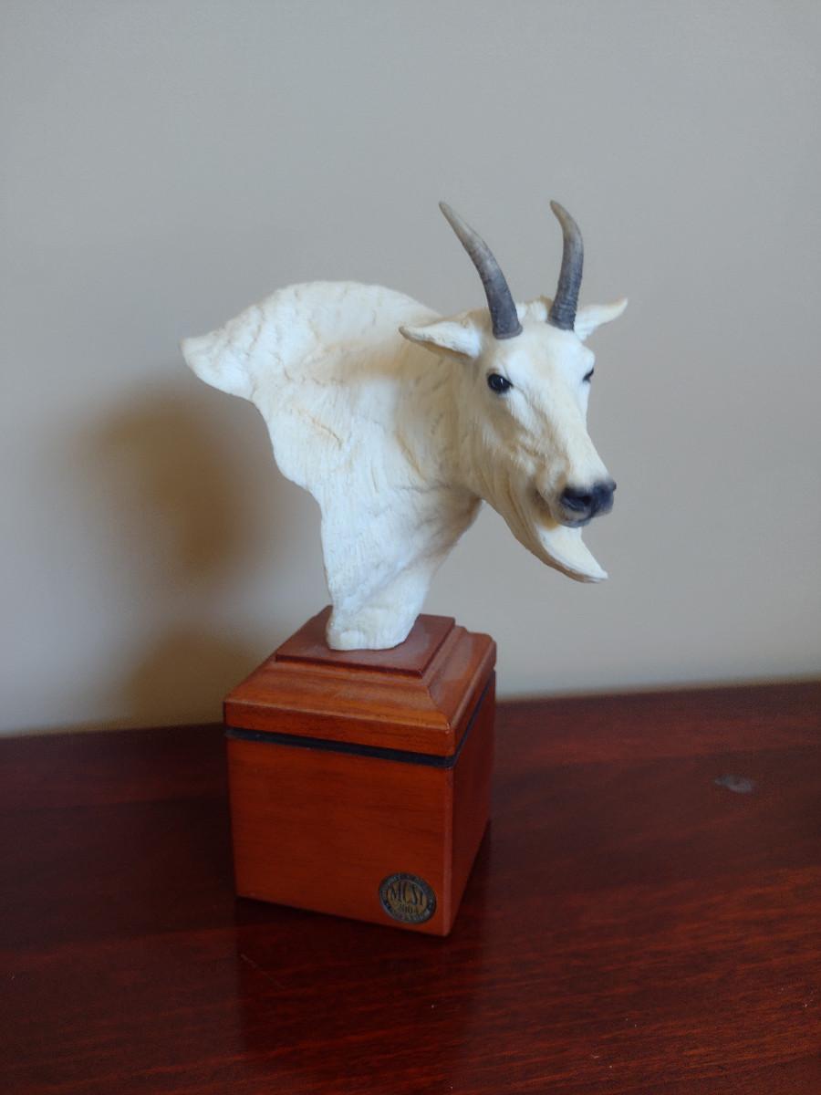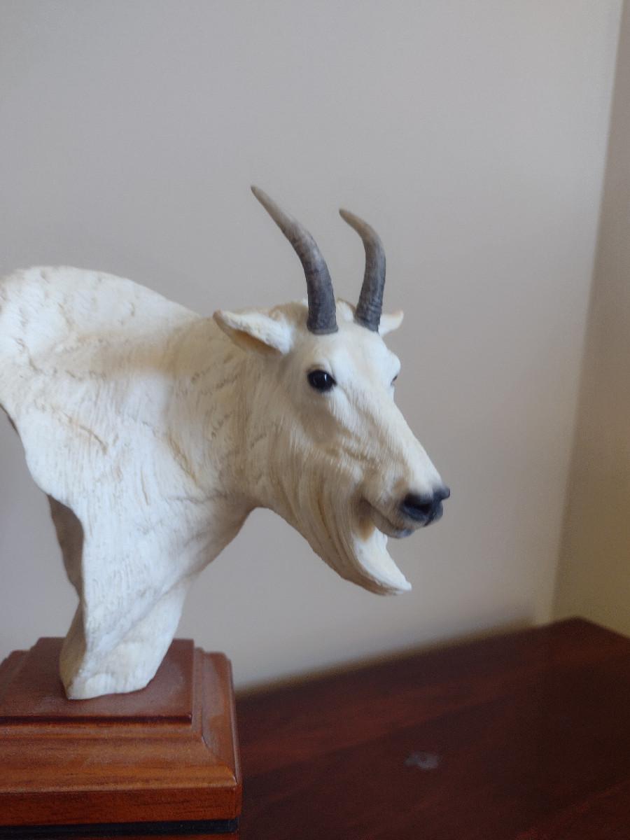 Mountain High Mill Creek Studios Mountain Goat Bust Figurine on Wood Base- Approx 9" Tall