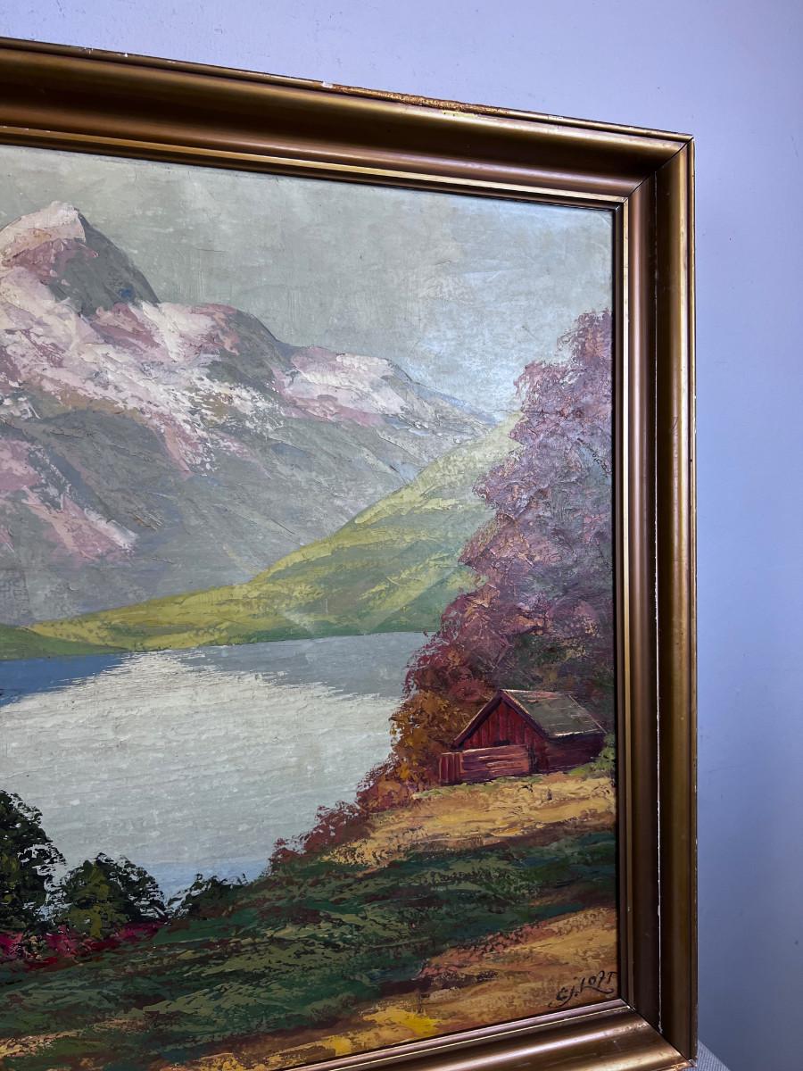 Mountain Lake Oil Painting, Original Signed by C J Loft