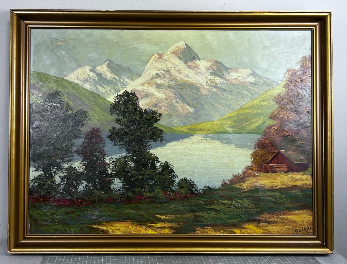 Mountain Lake Oil Painting, Original  Signed by C J Loft