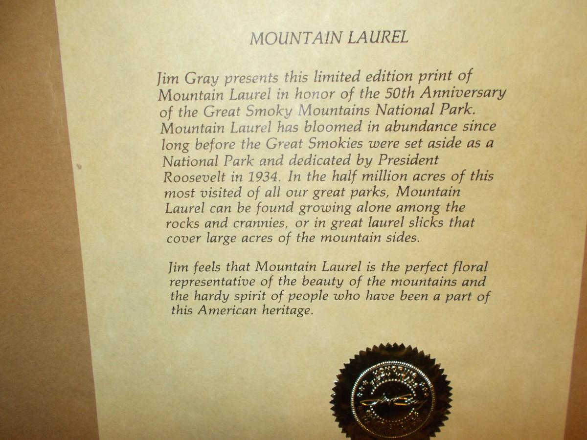 This painting was made in honor of the 50th anniversary of the Great Smoky Mountains National Park. Mr. Gray was commissioned to make this and there are only a limited number of these prints available. It is 30.5" x 24.5"
