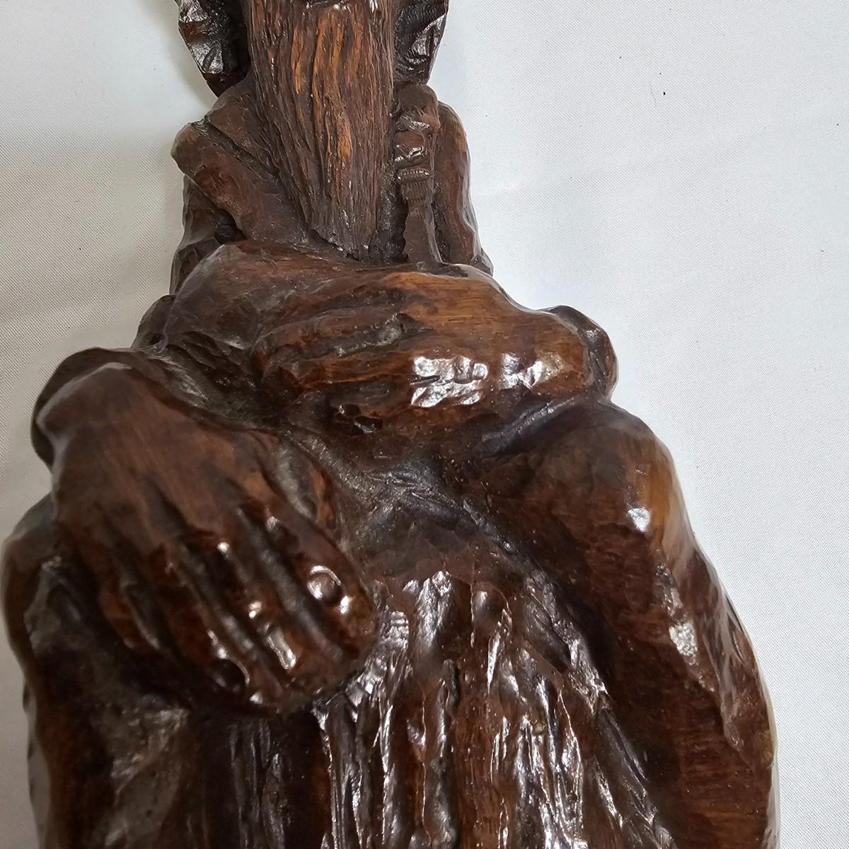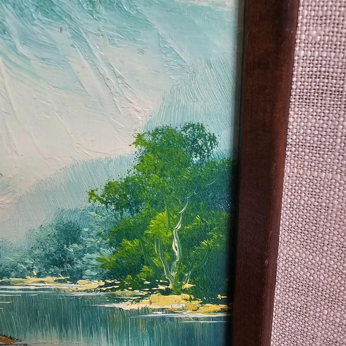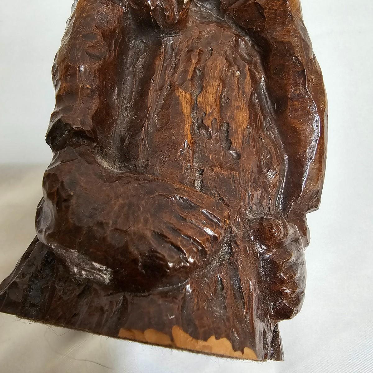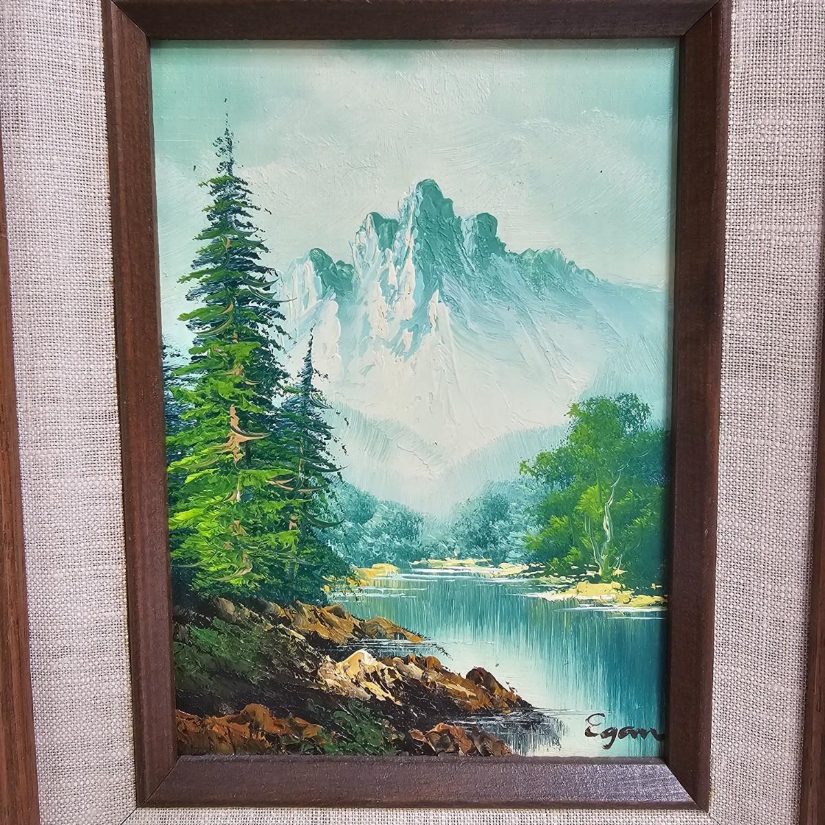 Whimsical mountain man figure in cast resin. This bearded man in overalls sits barefoot a stump, holding a jug. Figure measures 3.5" x 3.5" x 9"H. Oil painting is a mountain landscape on what appears to be a launch plywood back. Signed Egan this piece is 8.25" x 10.5" in wood frame. See photos for details. Shipping available.