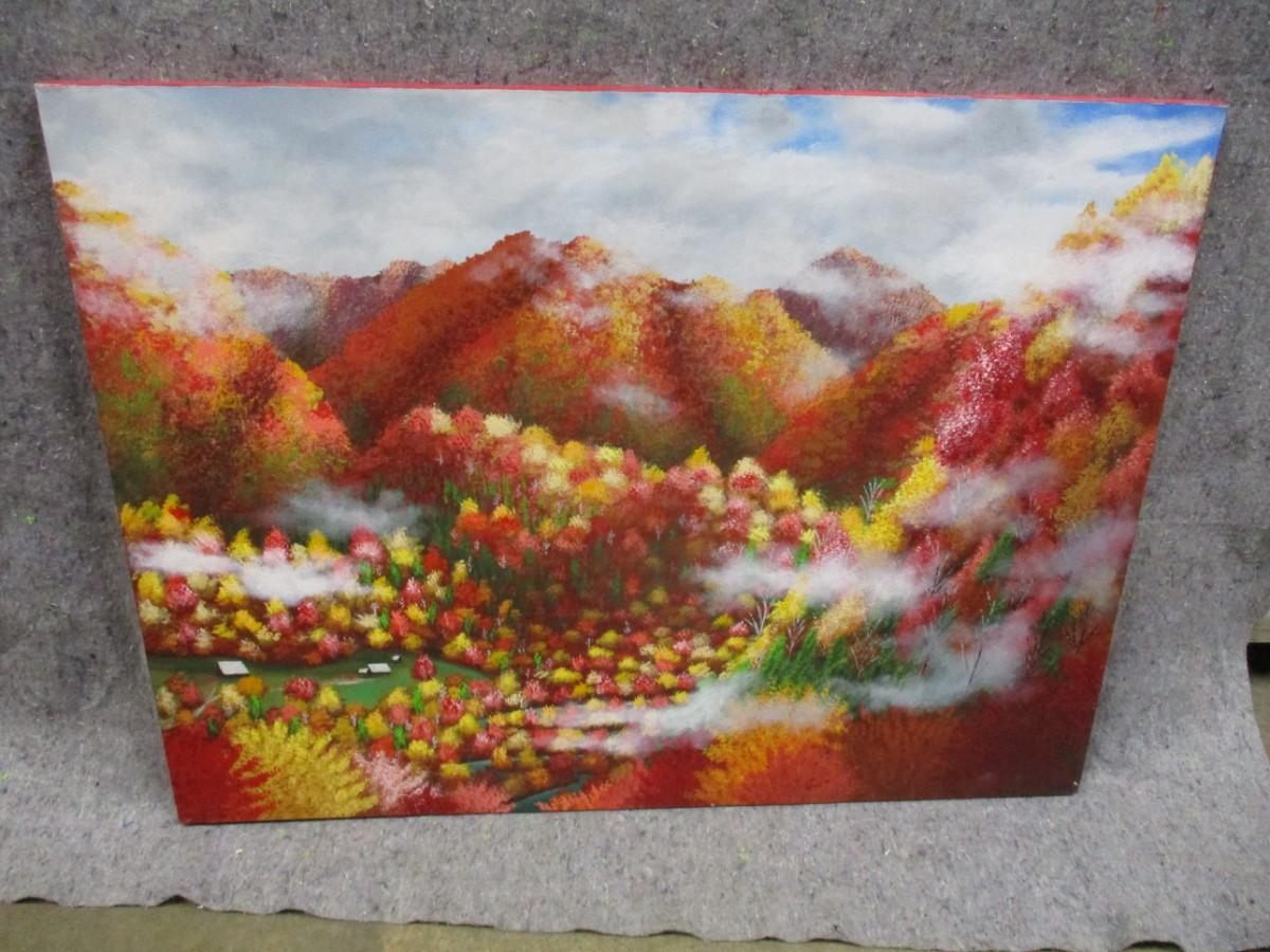 Mountain Scene Painting Signed By Artist Approx 40" x 30 1/4"