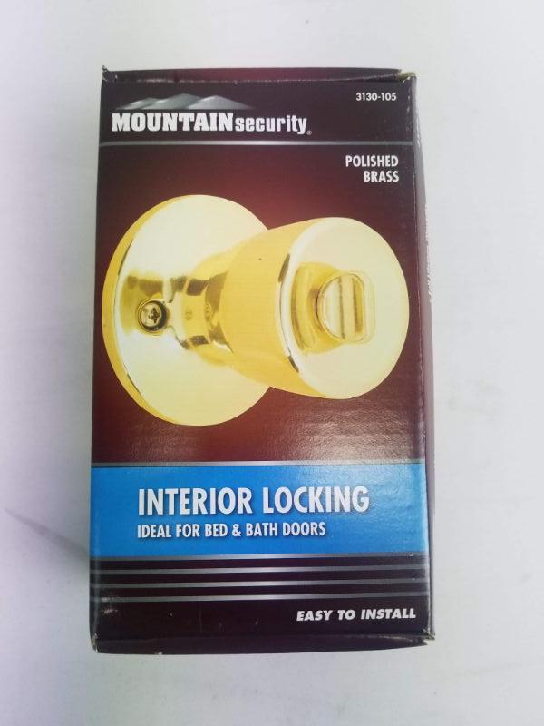 Mountain Security Interior Locking Polished Brass Door Knob - New