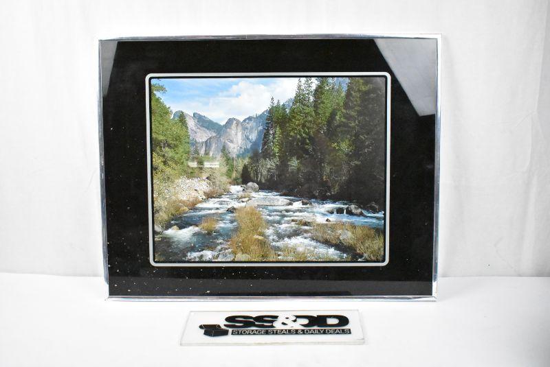 Mountain Stream Framed Photo. Black Mat, Silver tone Frame
