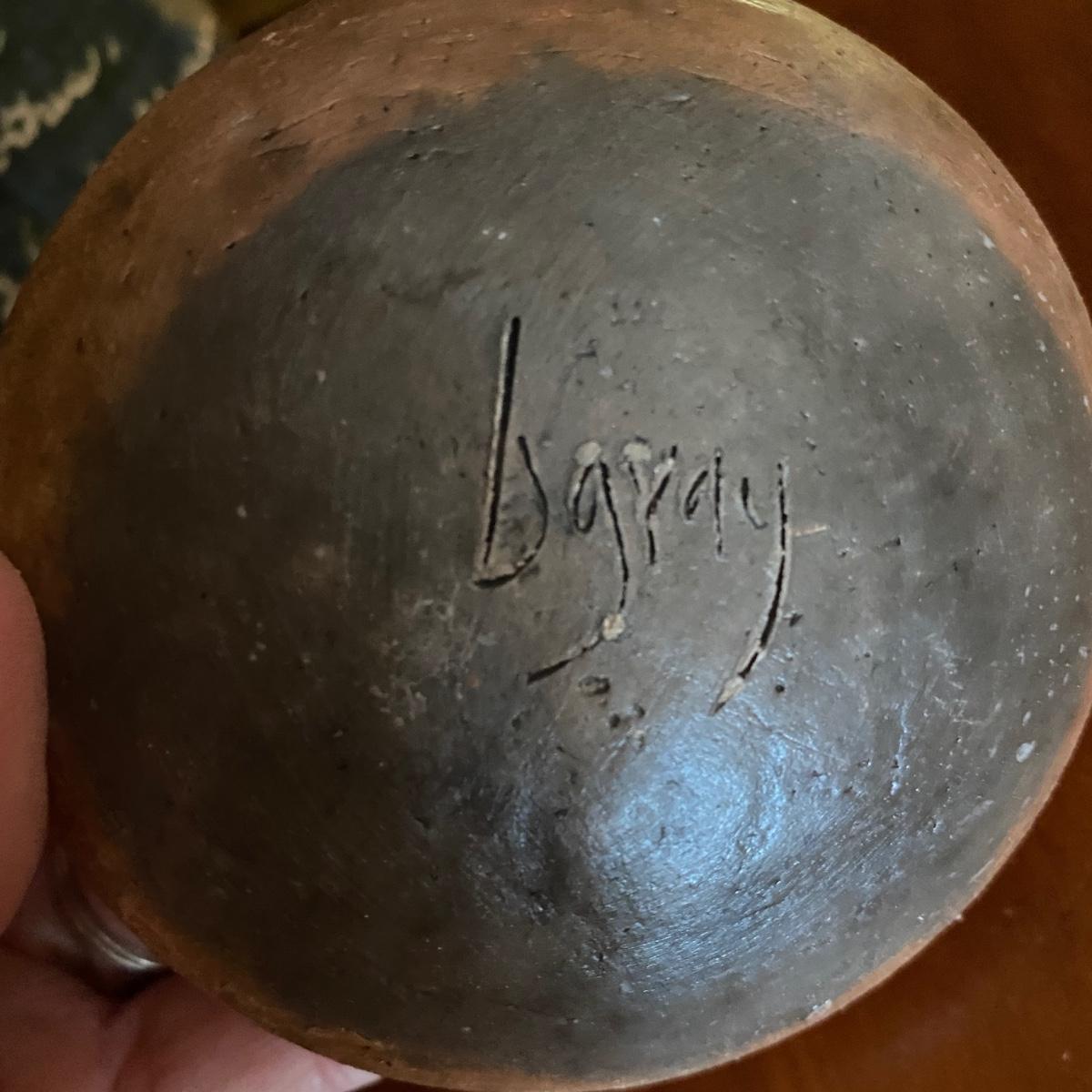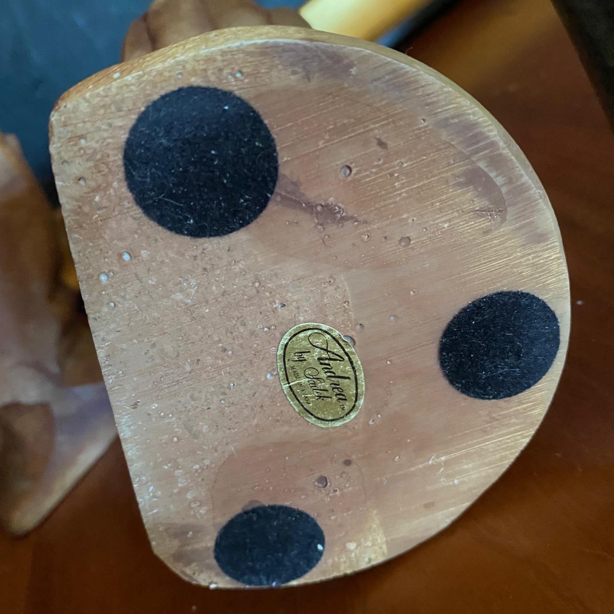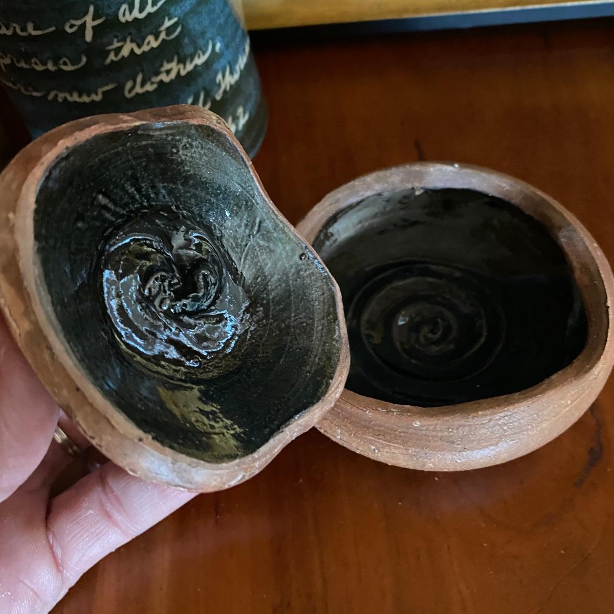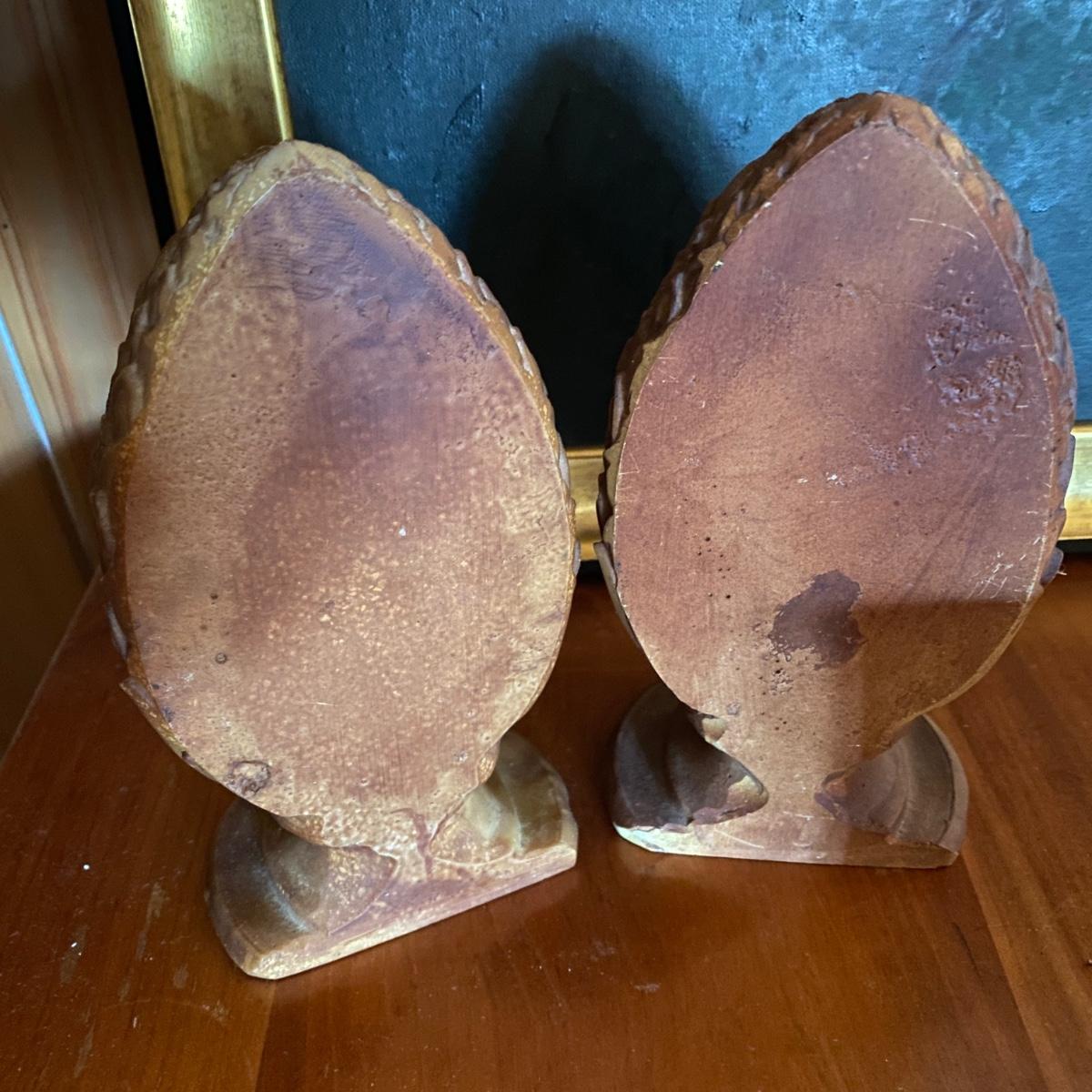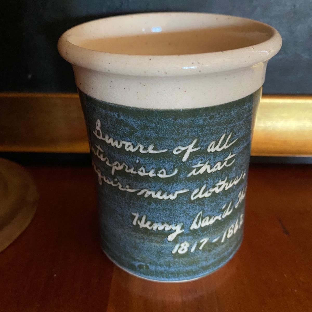 Beautiful oil painting of a blue ridge mountain sunset (or sunrise!). Appears to be an original but does not have a signature. Measures 19” x 23”. Lot also includes acorn book ends, small signed cup with Thoreau quote, and a cute small signed lidded pot with turtles on top. 4”d x 2”h. One turtle appears to have a broken head but it’s hard to tell for certain. Shipping available. Shipping art can be costly. We suggest calling our local UPS with dimensions and getting an estimate before bidding: (828) 252-6930.