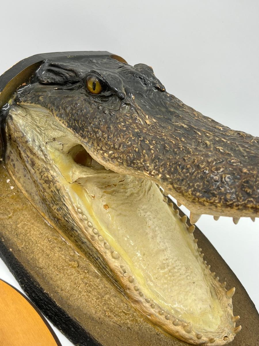 From 1986 ~ Alligator head = 10” H x 9.5” w x 13” D ~ Paw on plaque = 10” H x 8” W x 6” D