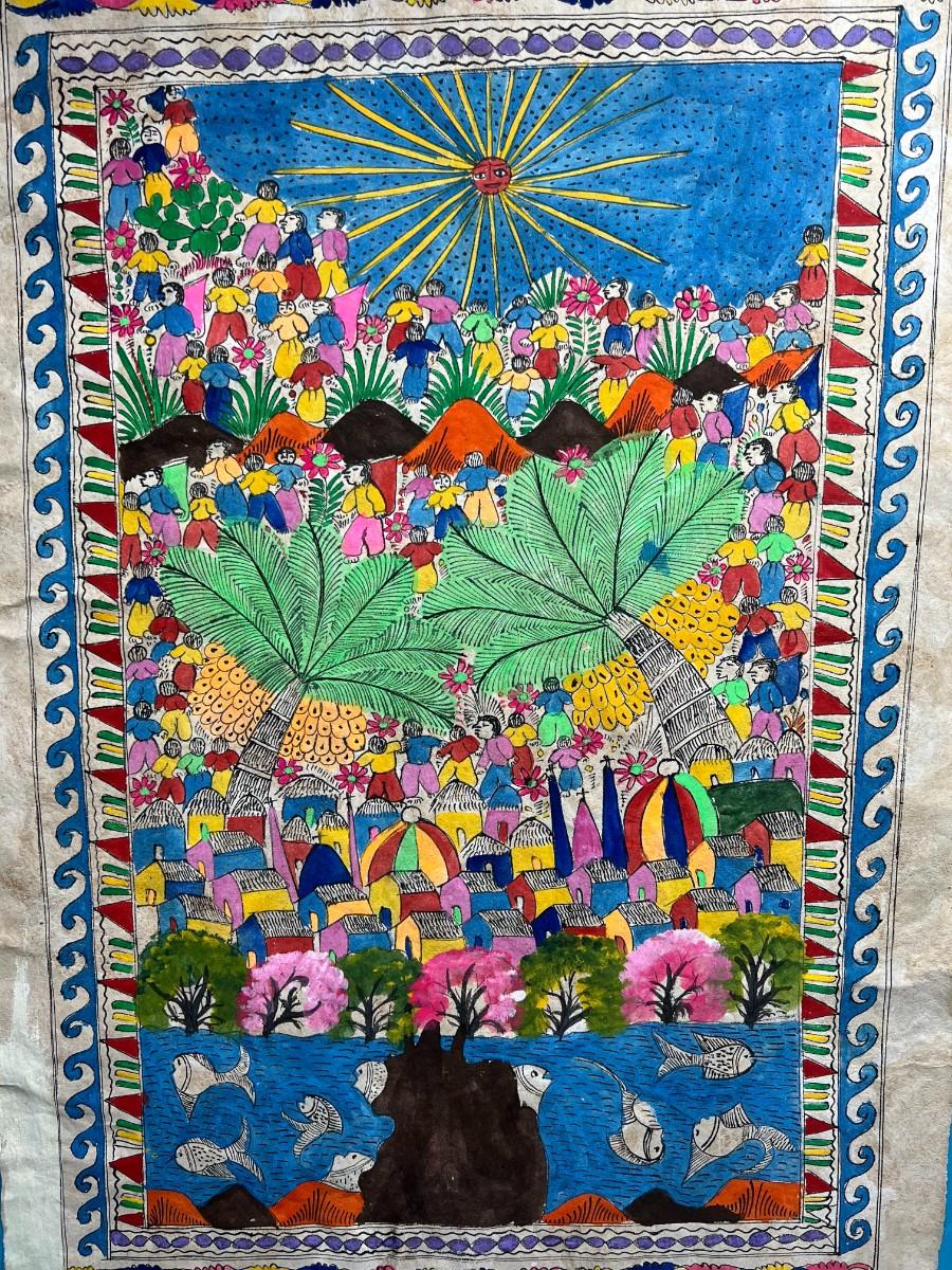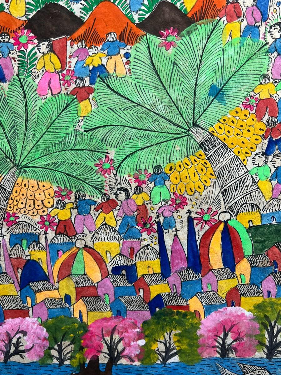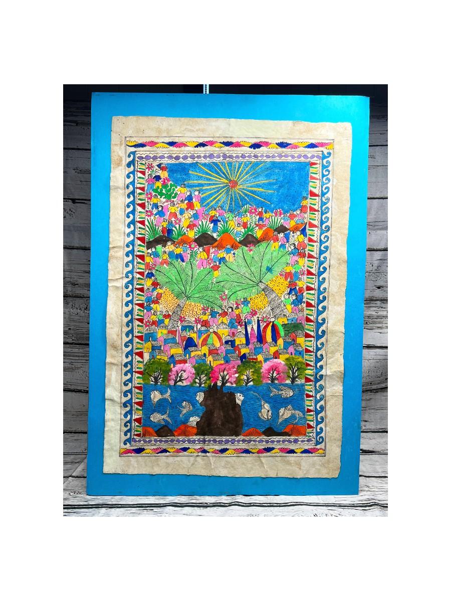 Mounted Amate Bark Puebla Guerrero Handmade Mexican Folk Art Drawing Painting