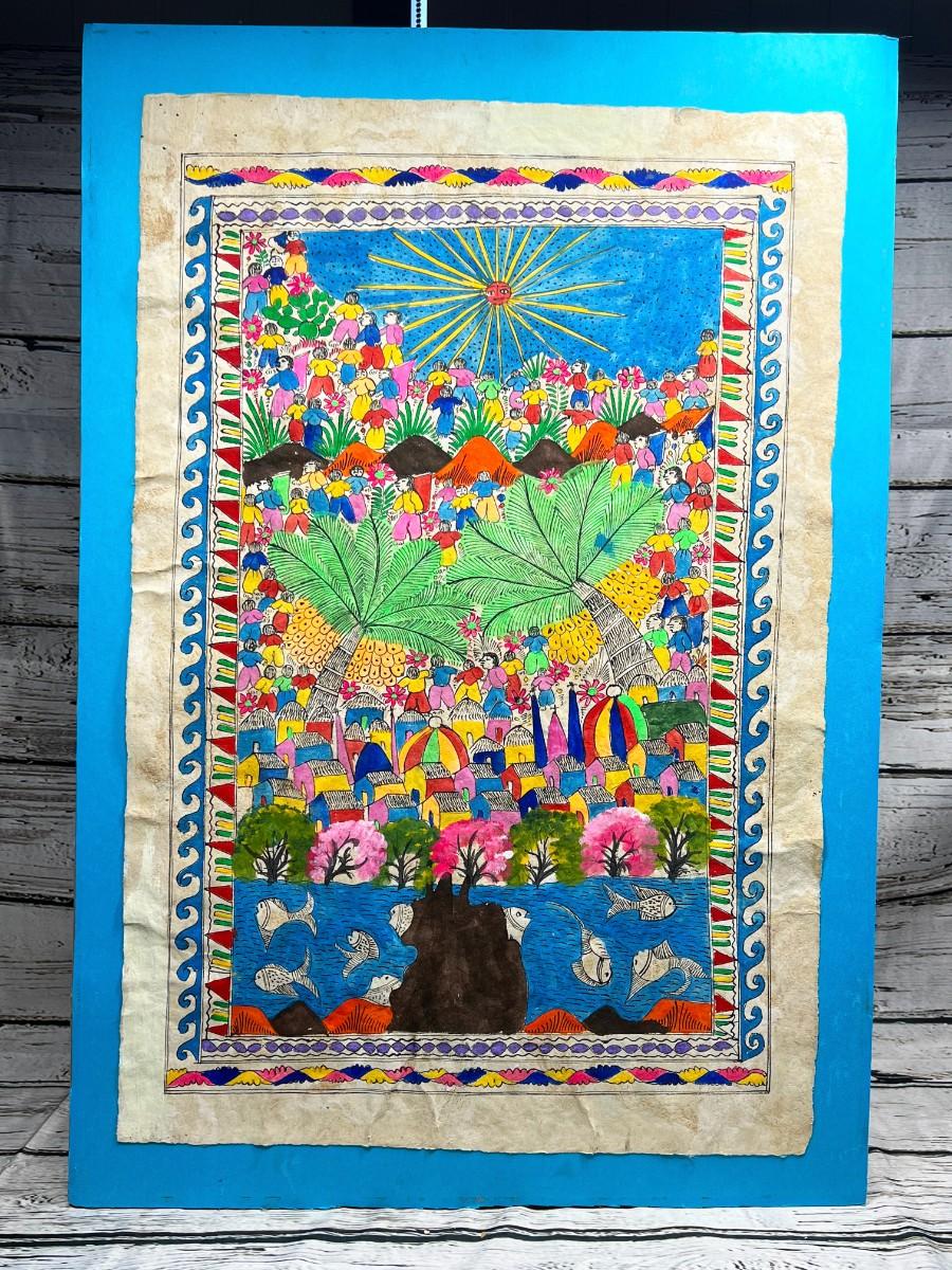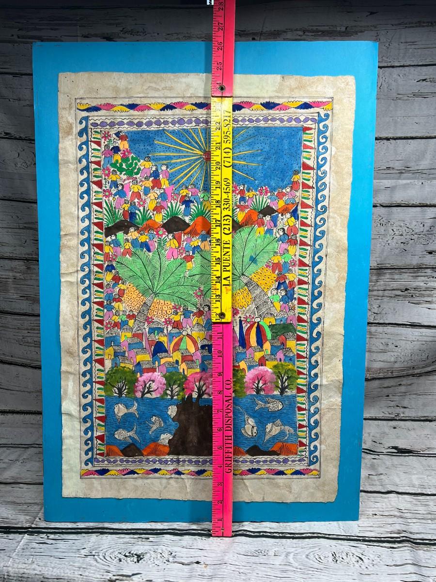 Mounted Amate Bark Puebla Guerrero Handmade Mexican Folk Art Drawing Painting, there is some light wear to the paper, but there is no significant damage and is in good displayabel condition. Check pictures for more details and for sizing.