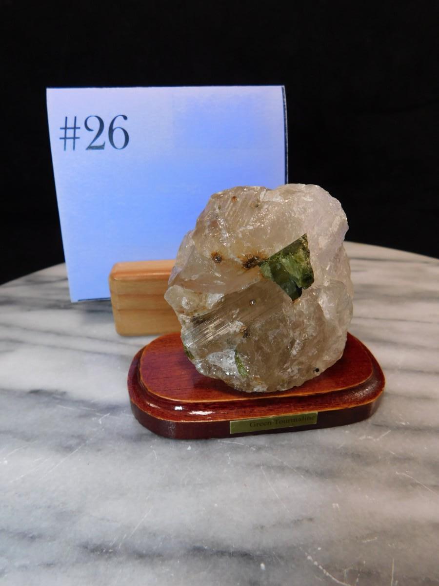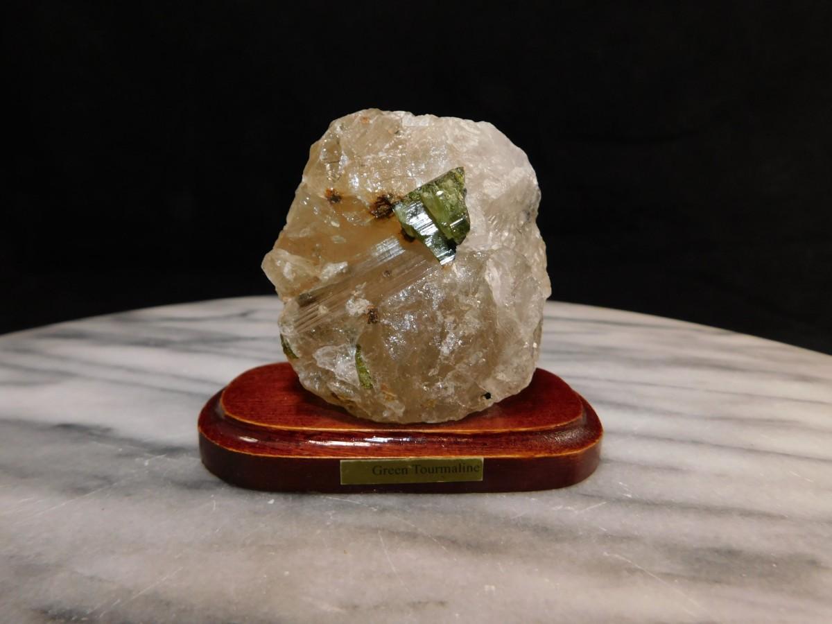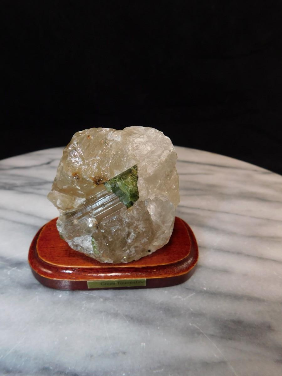 Mounted Raw Green Tourmaline in Quartz 2.75"