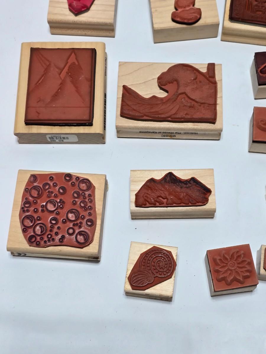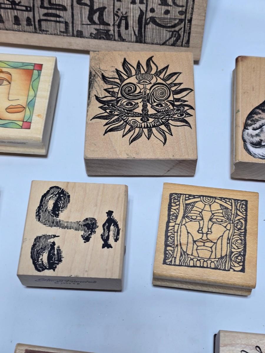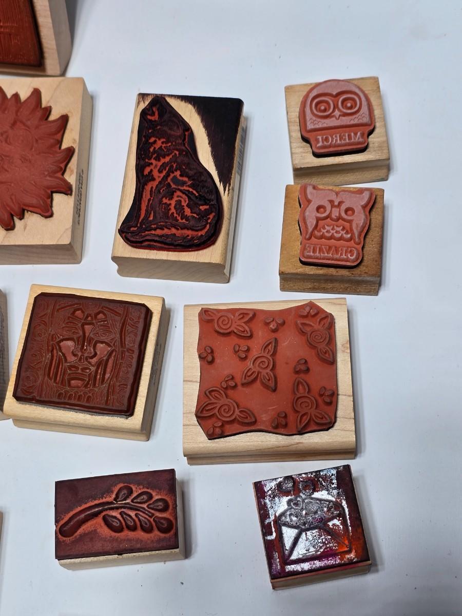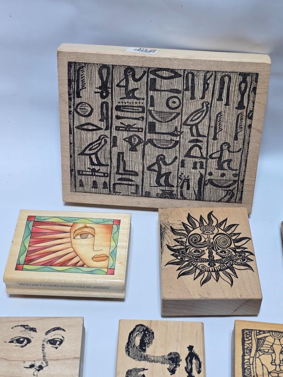 Mounted wood block stamps - large assortment - crafting stamps - Faces, Florals, Textures and more